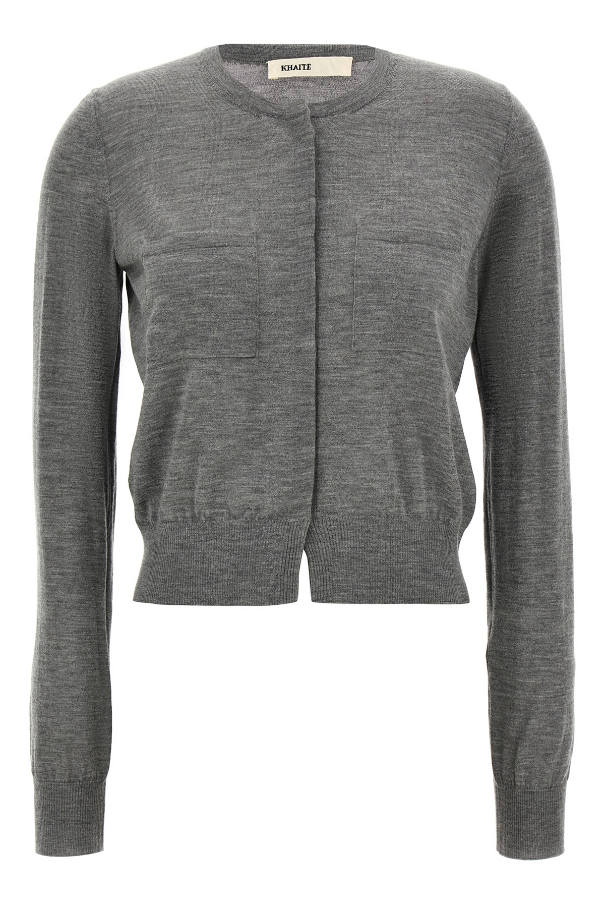 'Lilou' cashmere cardigan with crew neck, button closure, pockets, long cuffed sleeves.