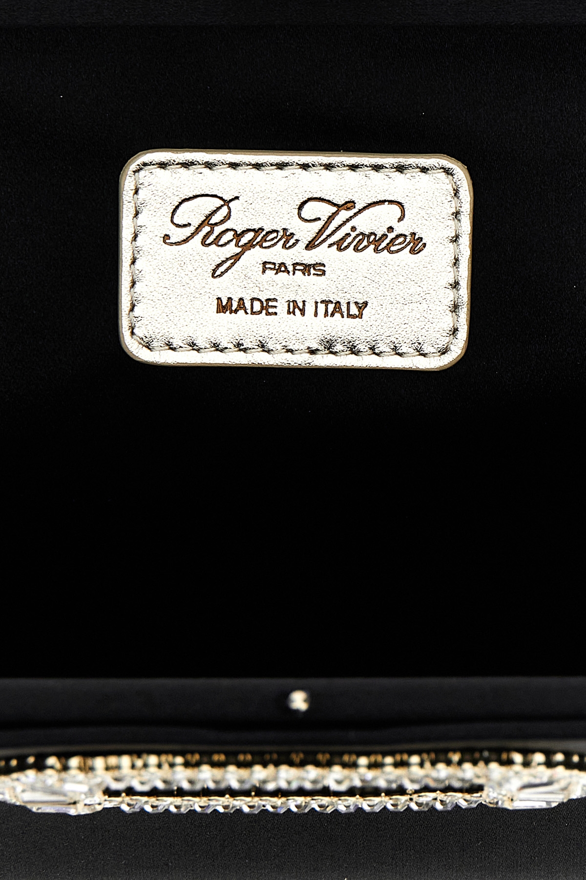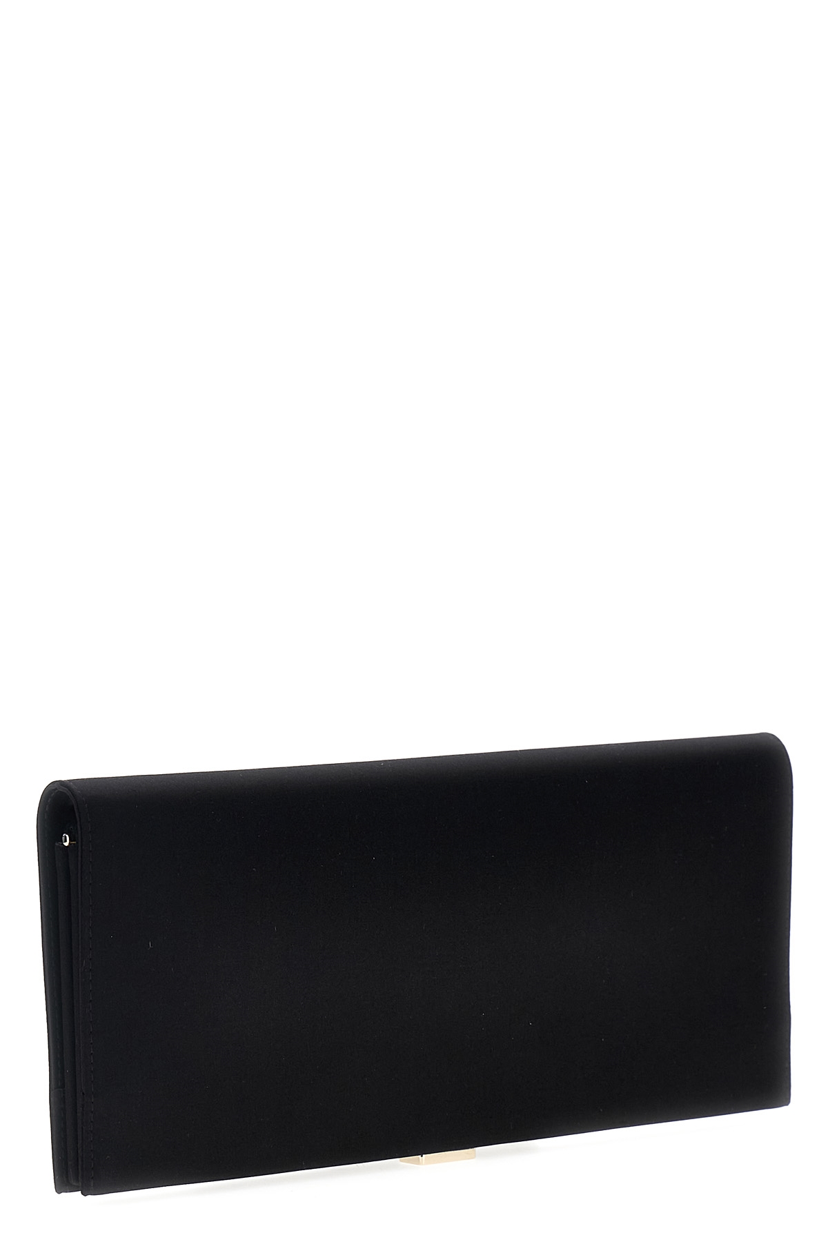 'Pilgrim Small' satin clutch bag with front jewel buckle, metal snap closure.