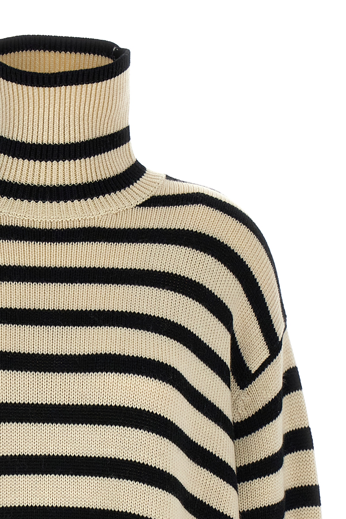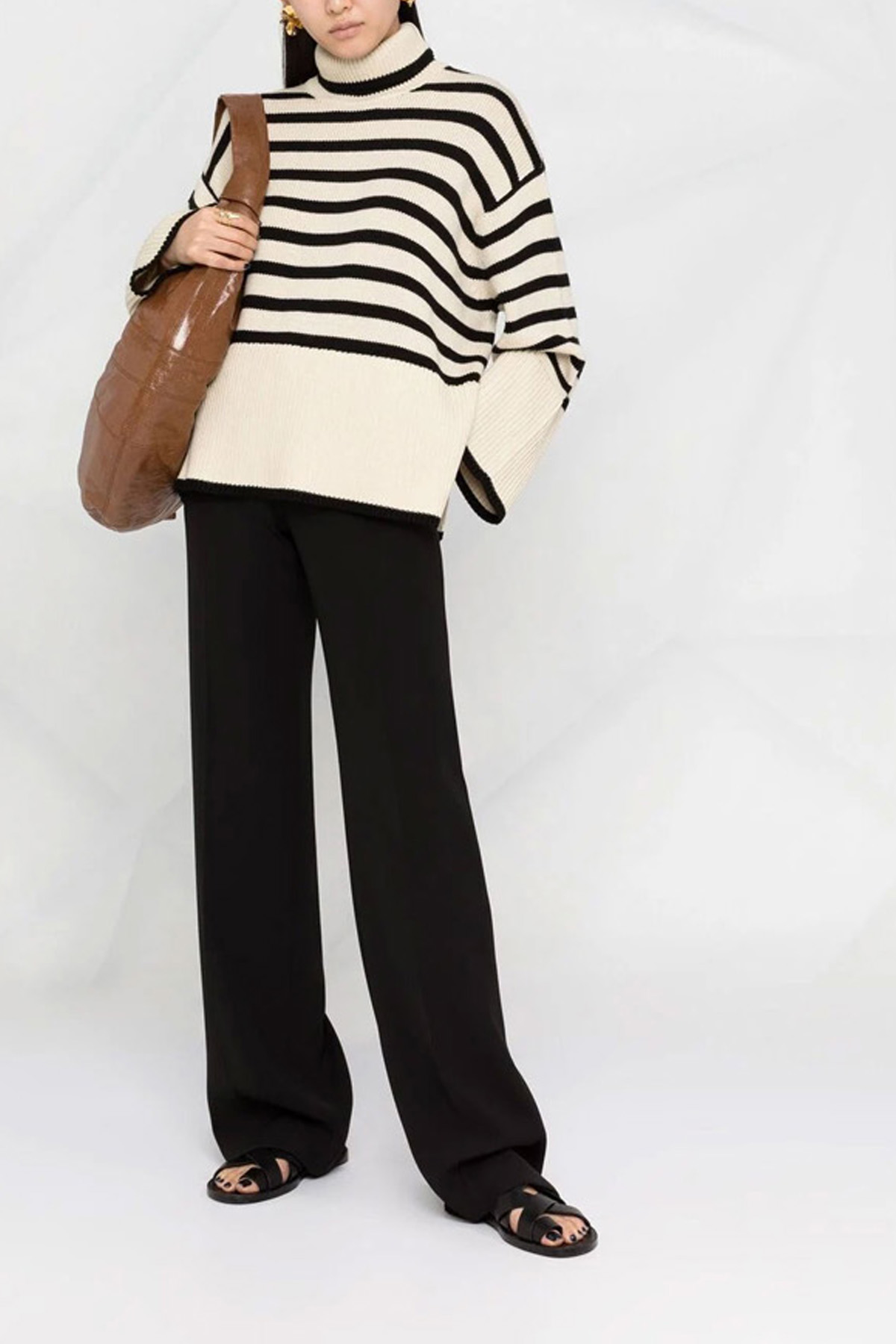 'Signature Stripe' wool sweater with high neck, long sleeves, side splits at the hem.