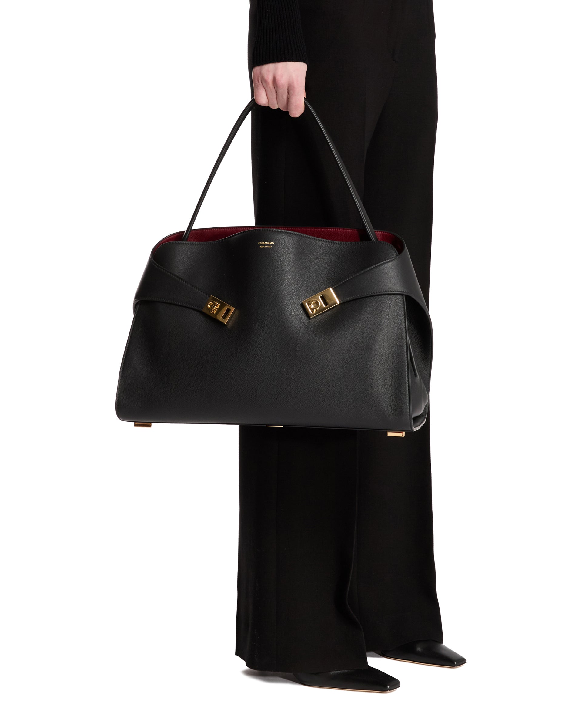 Black Large Hug Leather Bag: buy the product by FERRAGAMO from. Enter the site and find out more details.