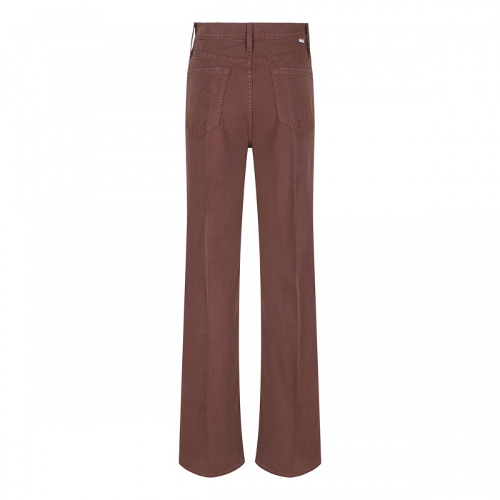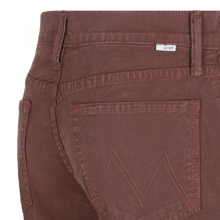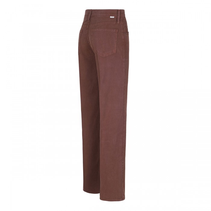 Faded brown stretch cotton blend The Rambler Zip Sneak jeans from Mother featuring wide straight leg, button closure and zip fly, high waist, clean hem, belt loops on the waistband, classic five-pocket style, M logo embroidery on back.