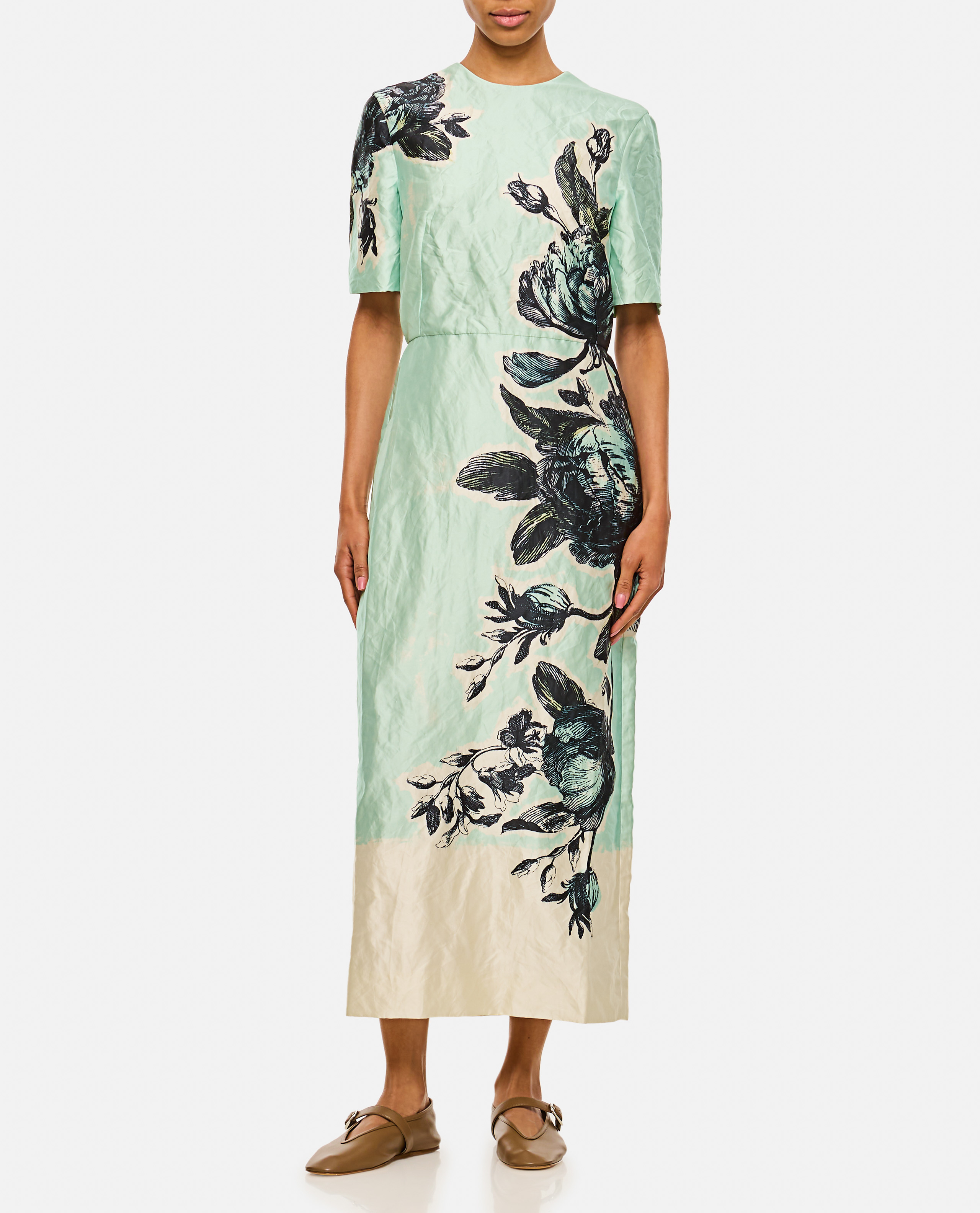 > 텍스쳐 샤틴 쇼츠 슬리브 미디 드레스