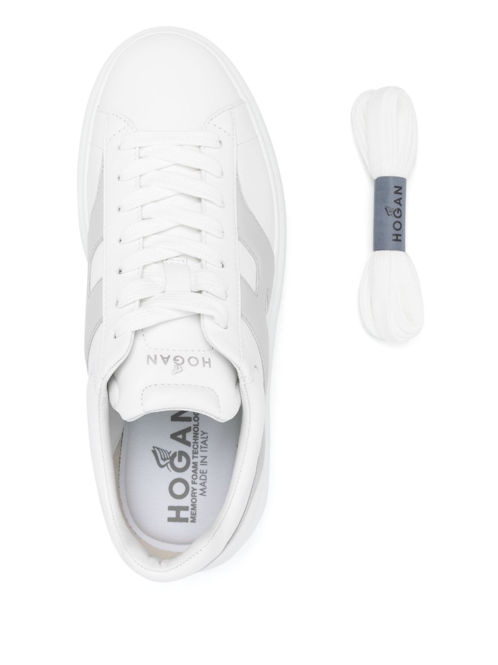 white front lace-up fastening interchangeable laces logo patch to the side logo-print tongue