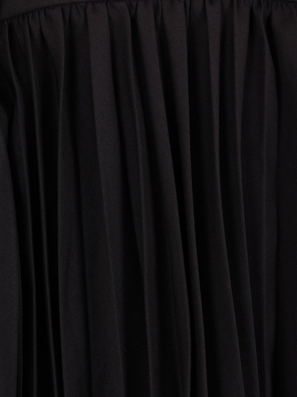 black cotton blend panelled design pleat detailing crew neck long sleeves ribbed cuffs asymmetric hem