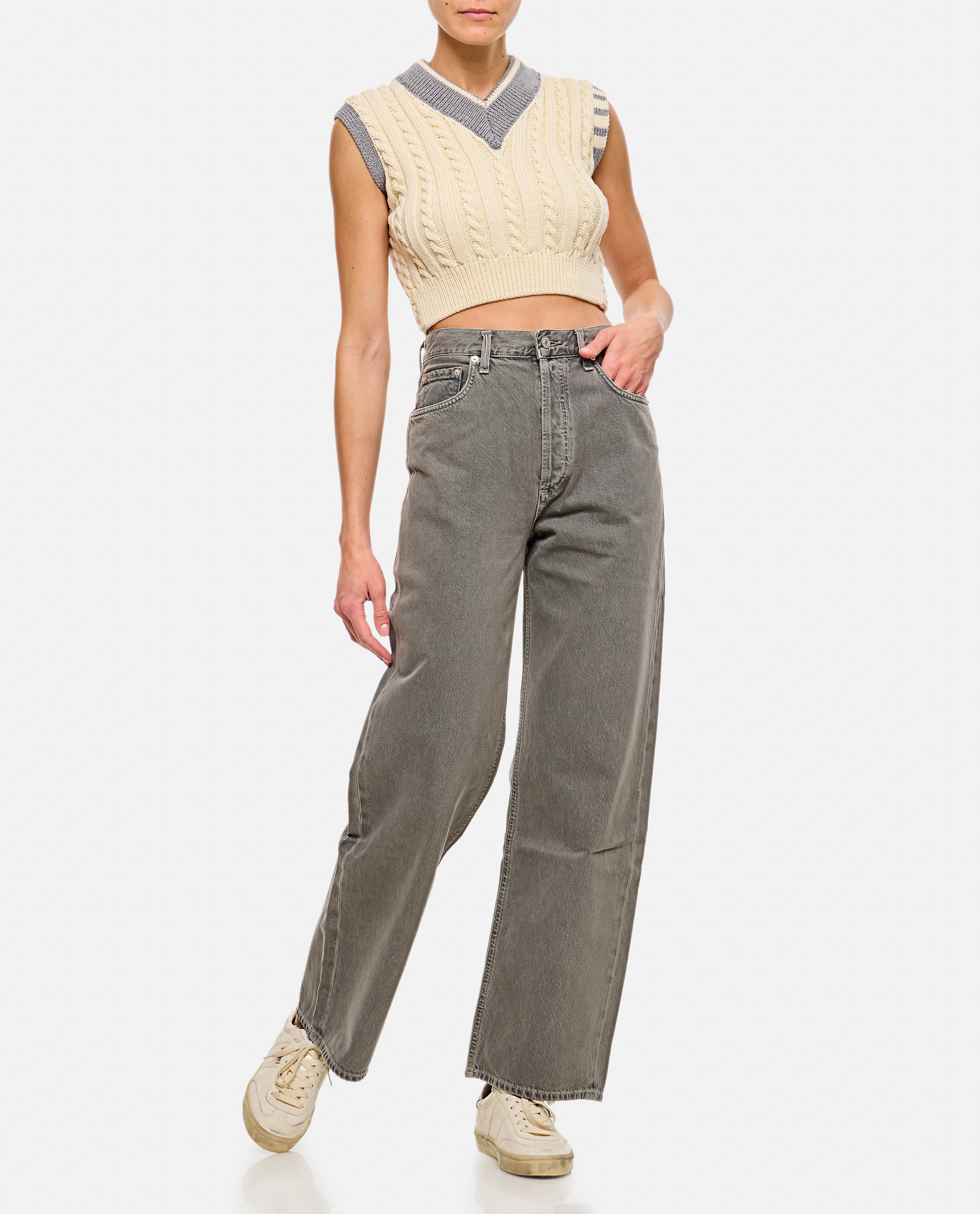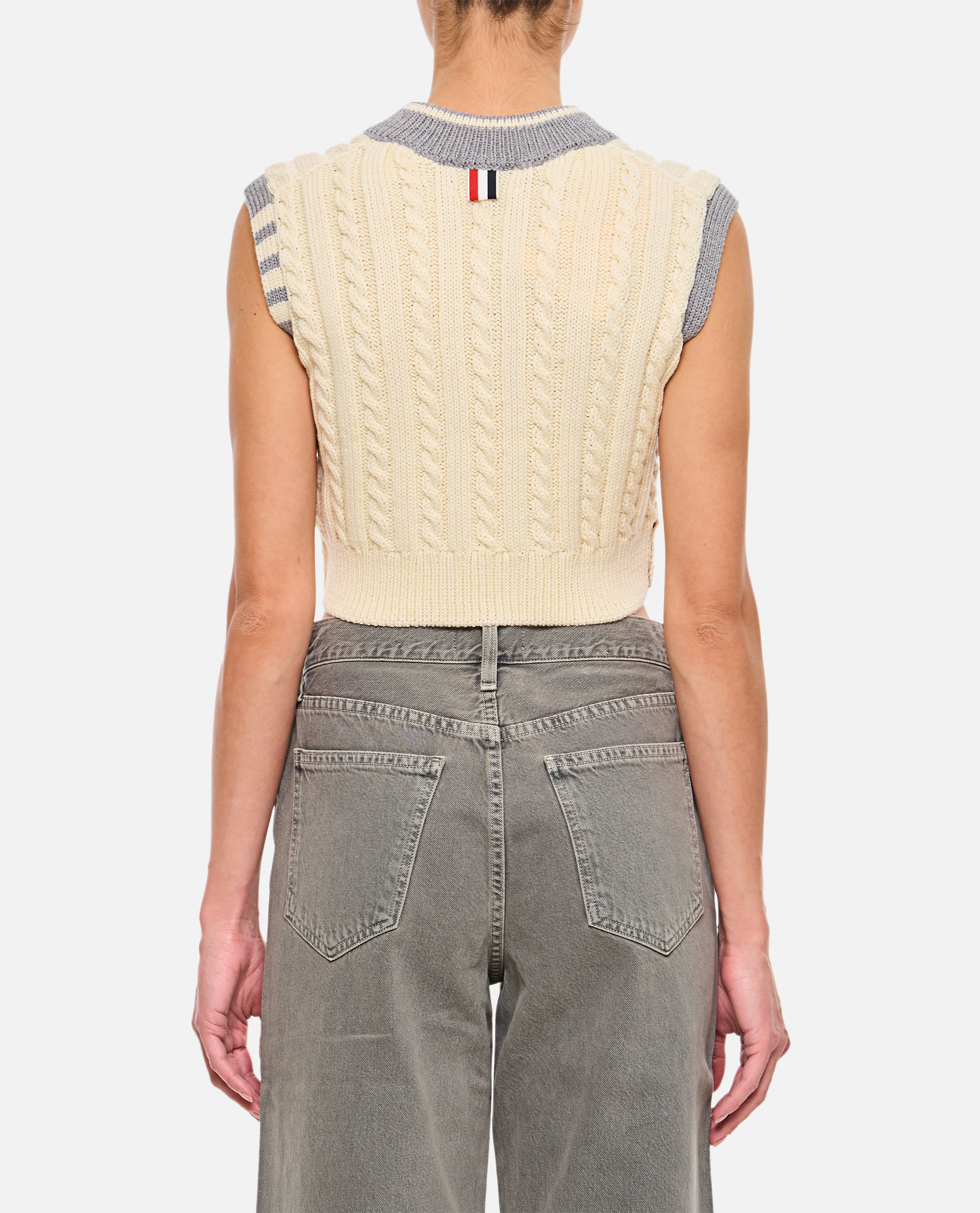 > 클래식 베이비 케이블 스티치 크롭 V 넥 풀오버