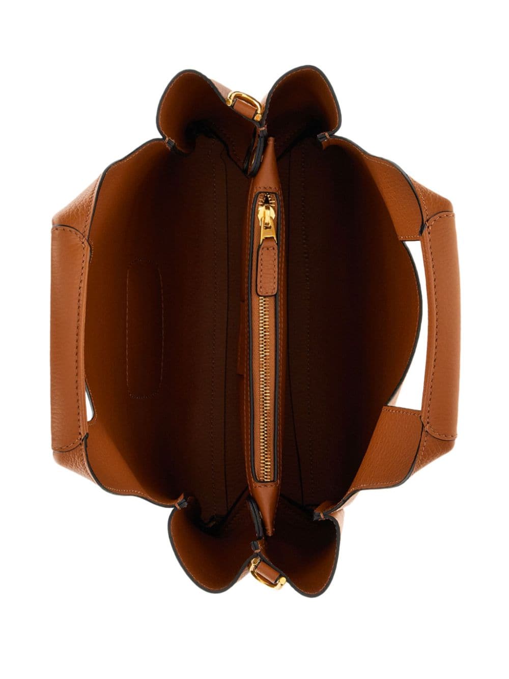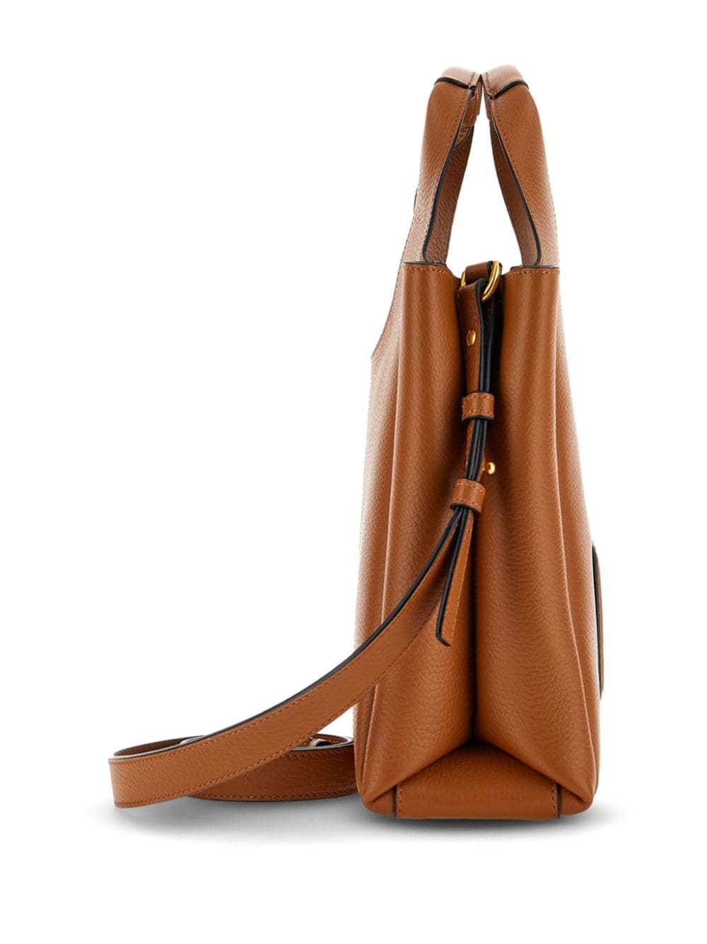 medium H-Bag logo-embossed tote bag from HOGAN featuring caramel brown, leather, grained texture, two top handles, embossed logo to the front, adjustable detachable shoulder strap, partitioned compartment and internal zip-fastening pocket.