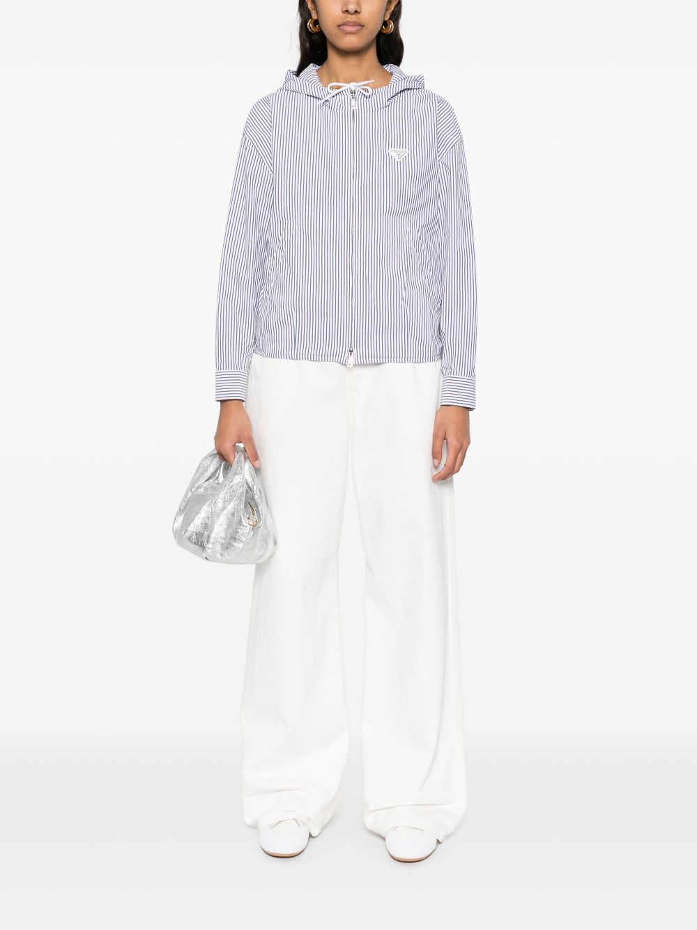 white front two-way zip fastening slouchy drawstring hood press-stud fastening cuffs two side welt pockets