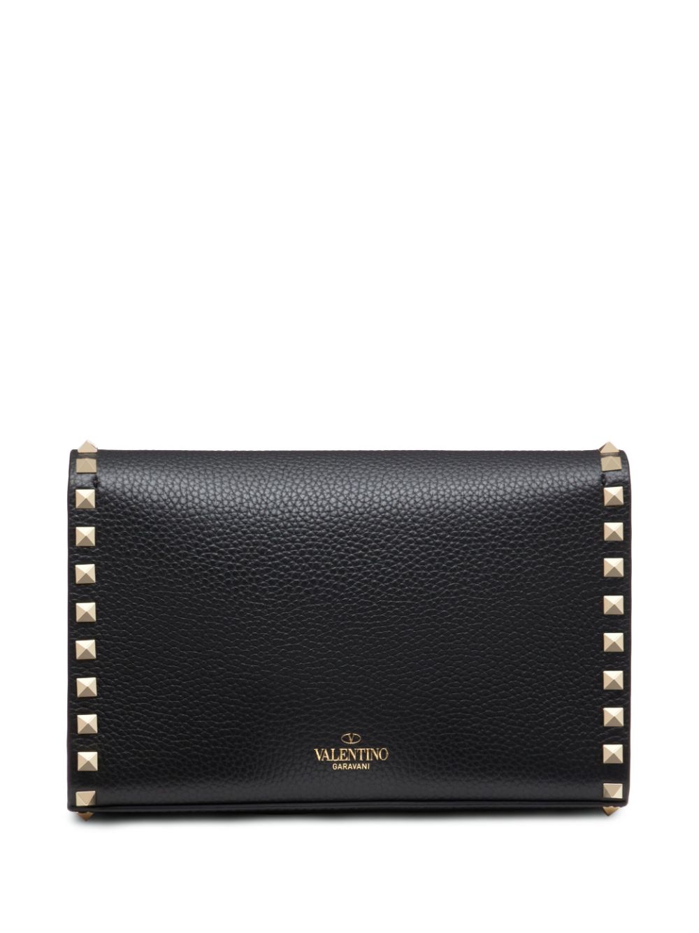 black leather signature Rockstud detailing rectangle body foldover top adjustable shoulder straps