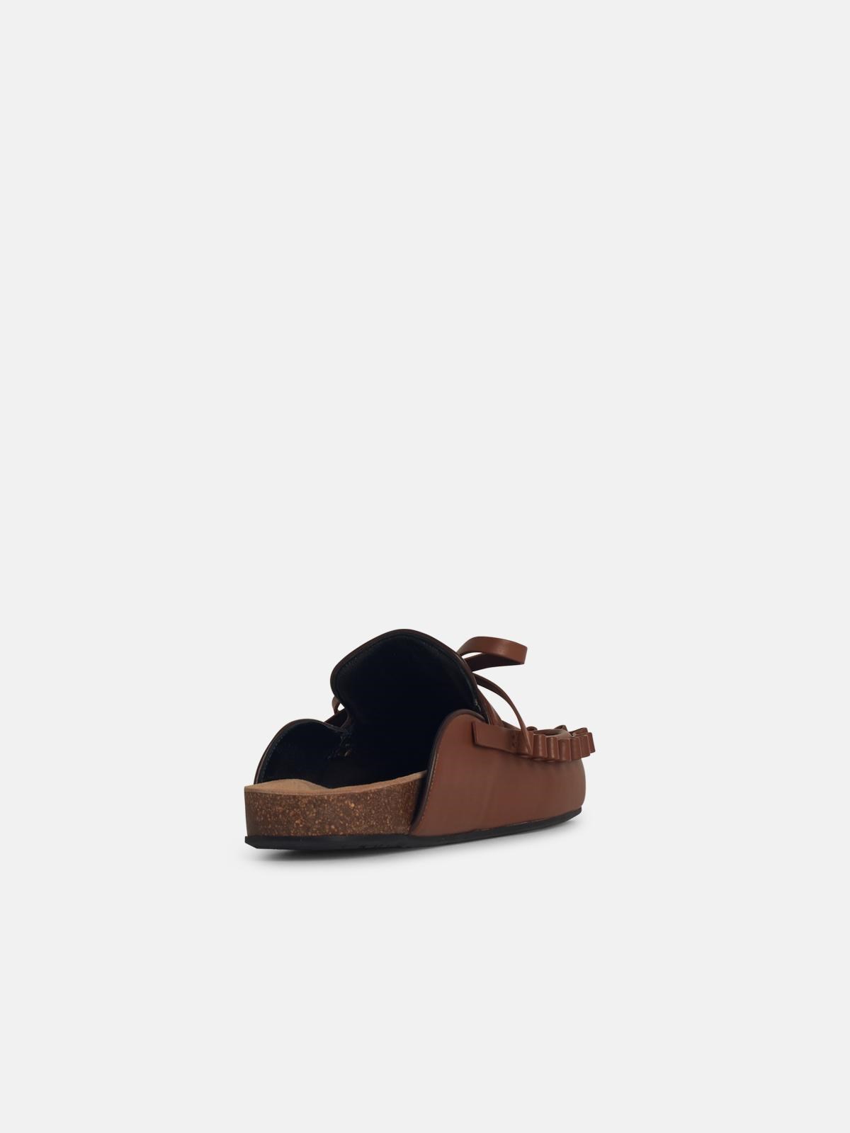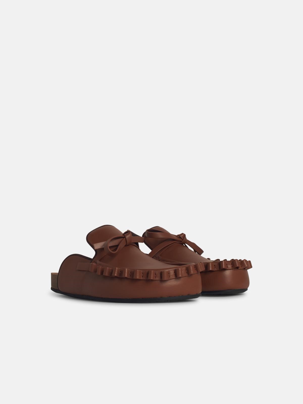'RUFFLE' BROWN LEATHER SLIPPERS