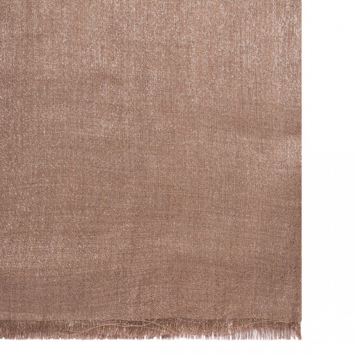 Red-earth hue cashmere and silk blend scarf from Brunello Cucinelli featuring glow finishing, fringed hem.