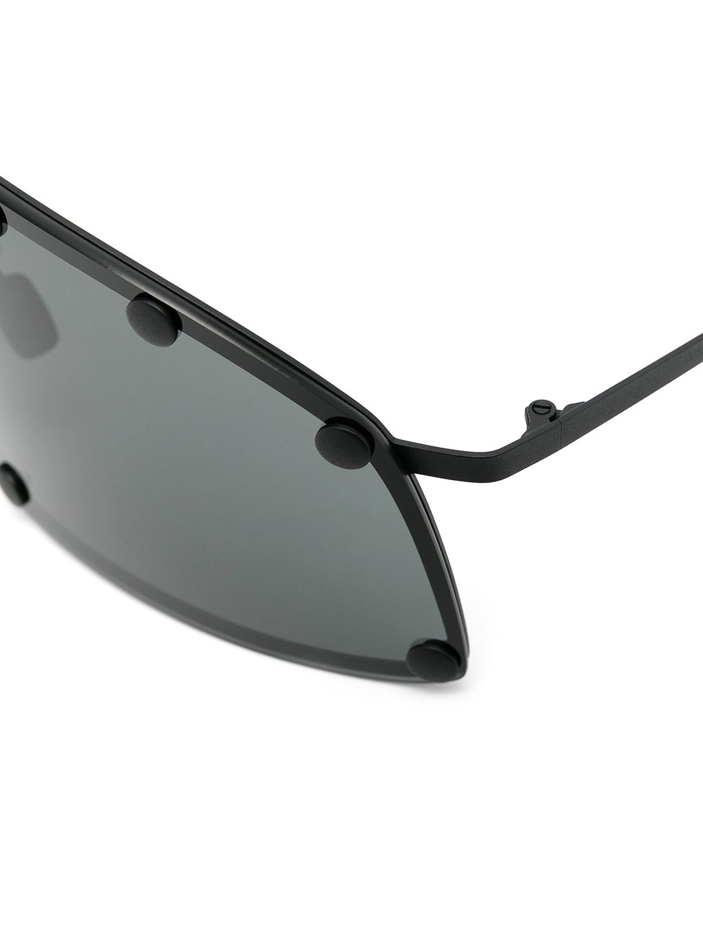 Black metal oversized sunglasses from RICK OWENS featuring oversize frame and grey tinted lenses. We know you'll look after them, but these glasses come with protection, just in case..