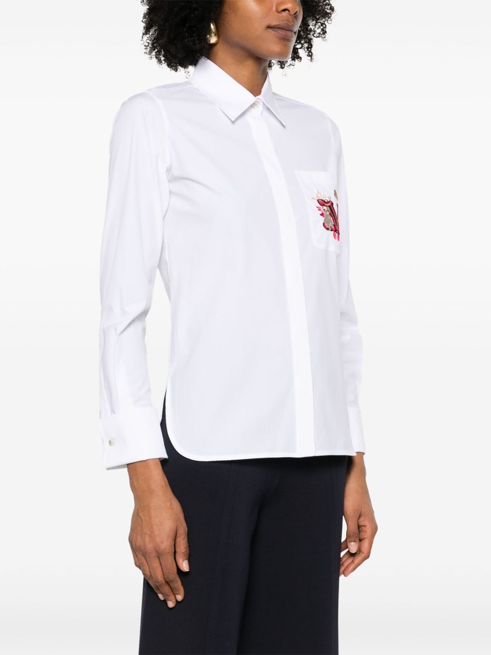 white concealed front button fastening chest patch pocket buttoned cuffs embroidered logo at the chest