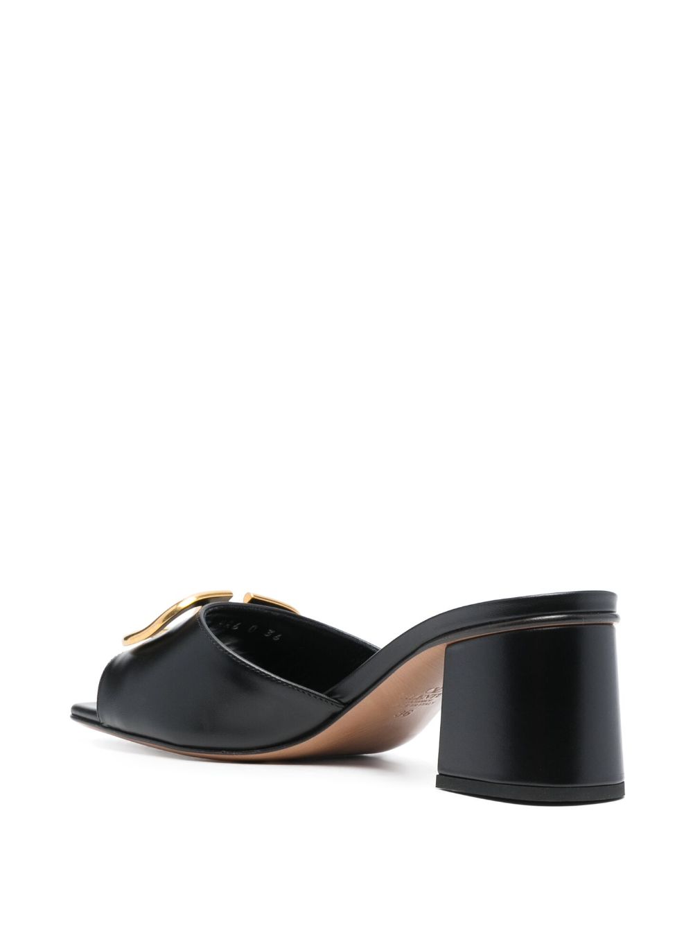 black calf leather branded leather insole applique logo open toe single toe strap slip-on style 60mm mid block heel