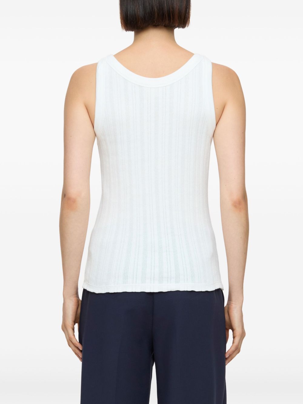white front button placket U-neck sleeveless