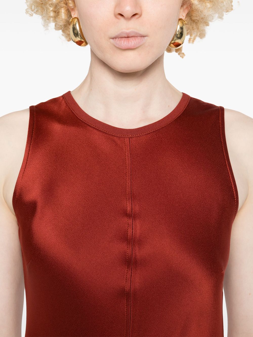 brick red concealed rear hook and zip fastening crew neck sleeveless