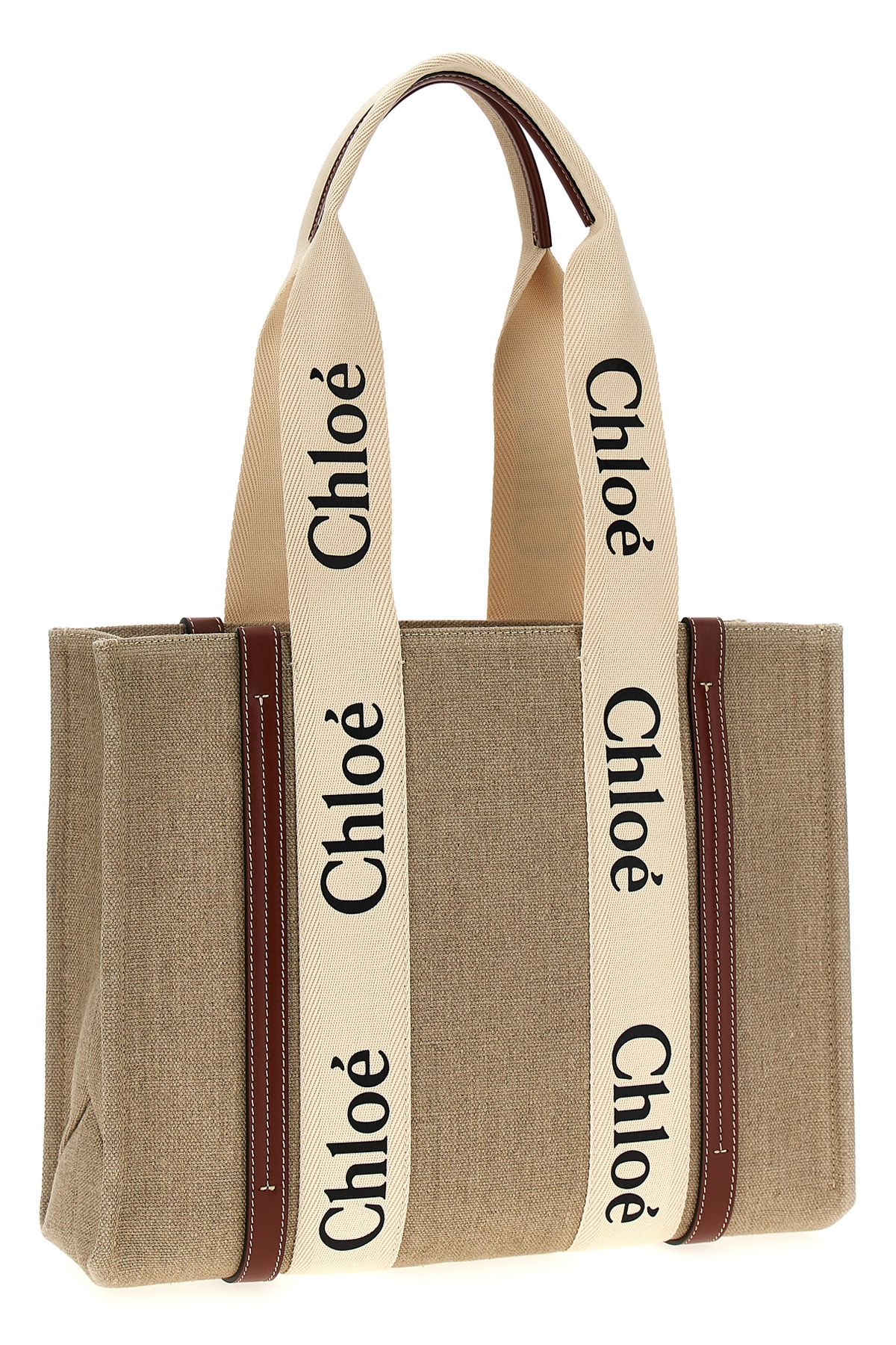 'Woody Medium' shopping bag in canvas featuring leather details and a logo handles.