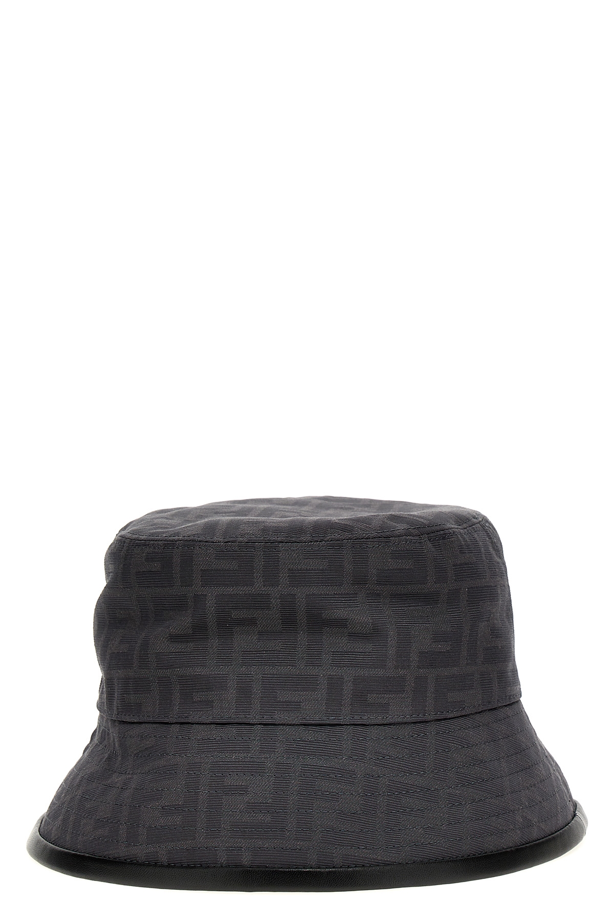 Bucket hat in jacquard 'FF' fabric with leather trim.