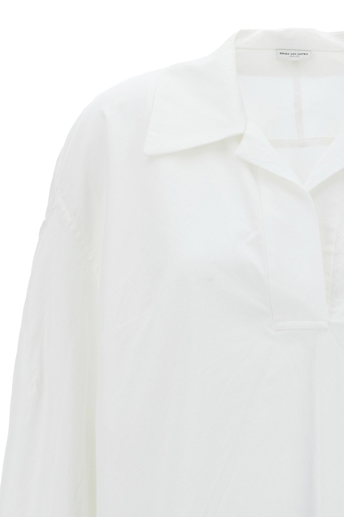 'Camis' cotton blouse with collar and V-neck, long cuffed sleeves.