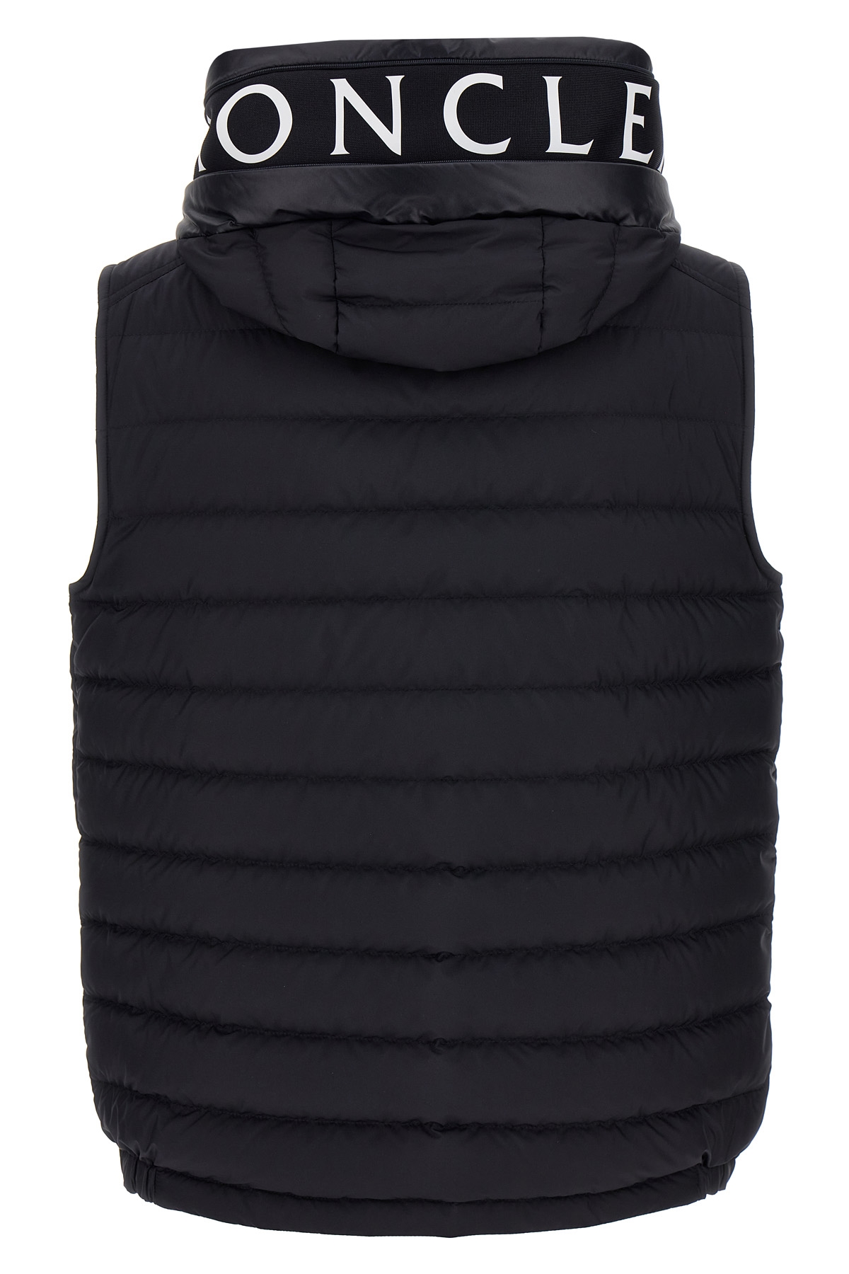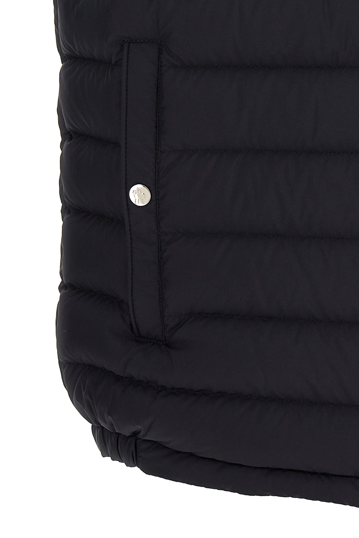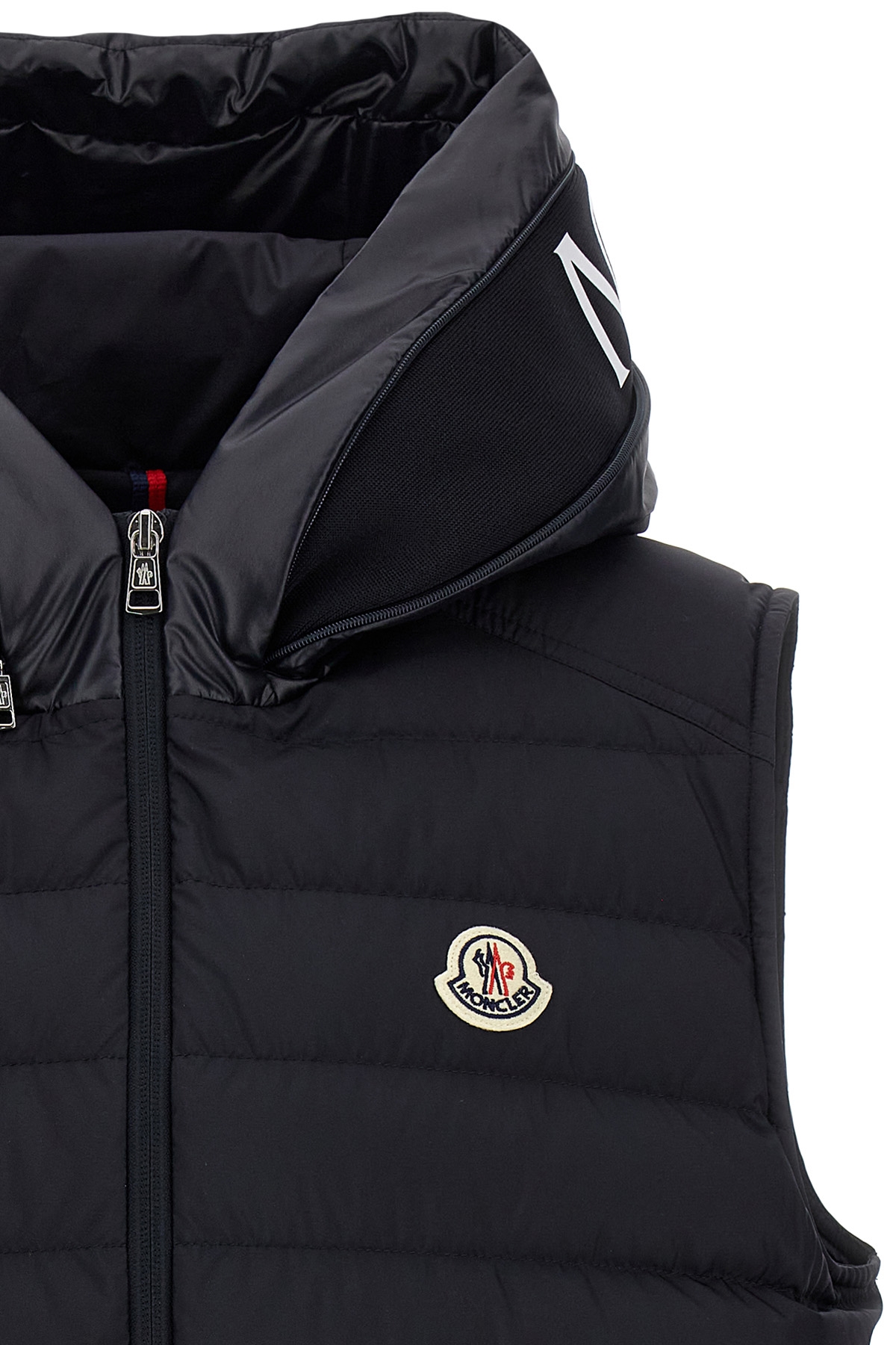 'Bourget' vest in recycled polyester with goose puma padding, front logo patch, zip closure, hood with concealed logo band via zip, pockets. Midnight blue color. SUSTAINABLE: Product made from recycled polyester.