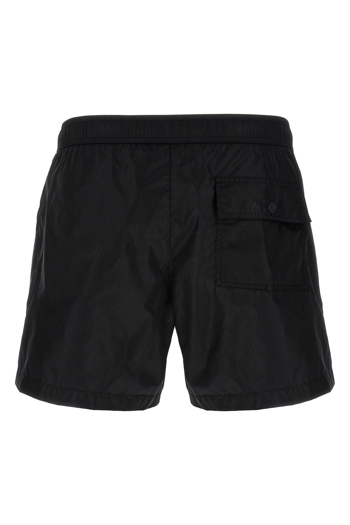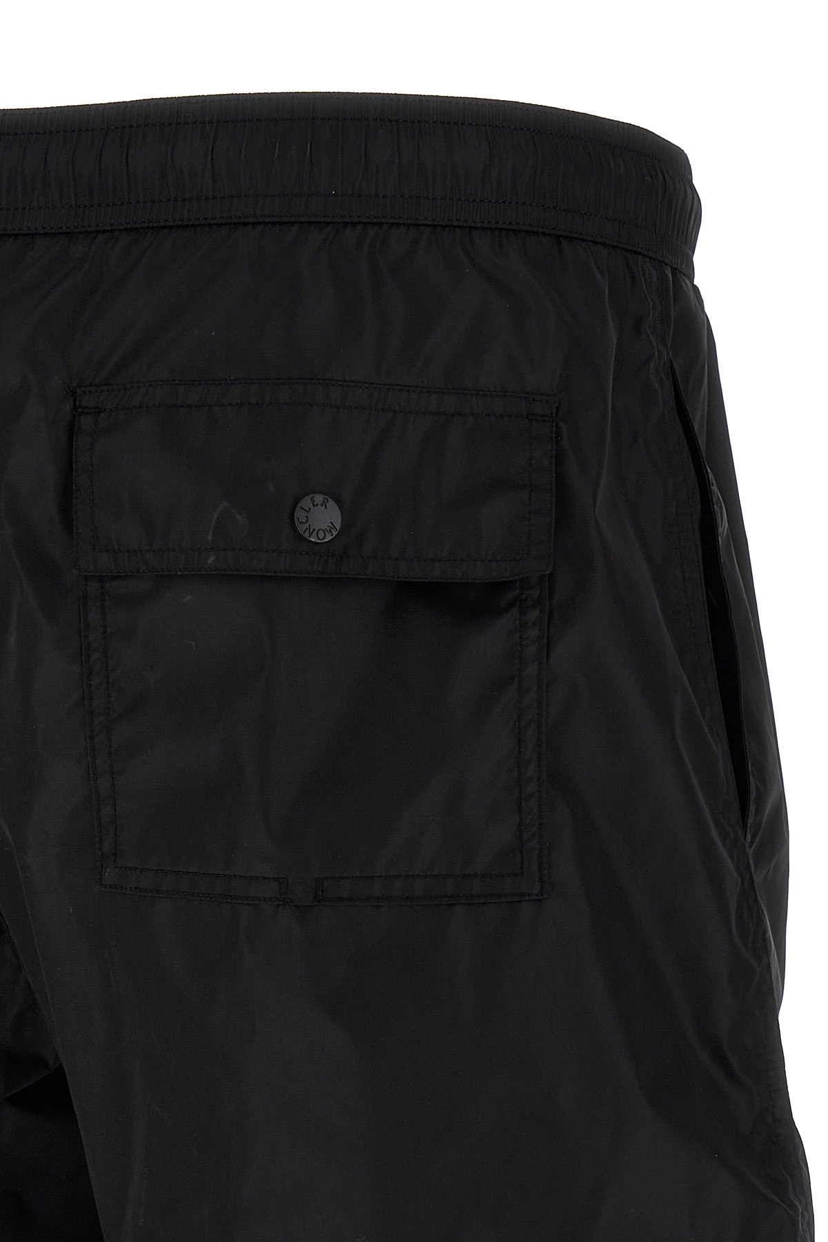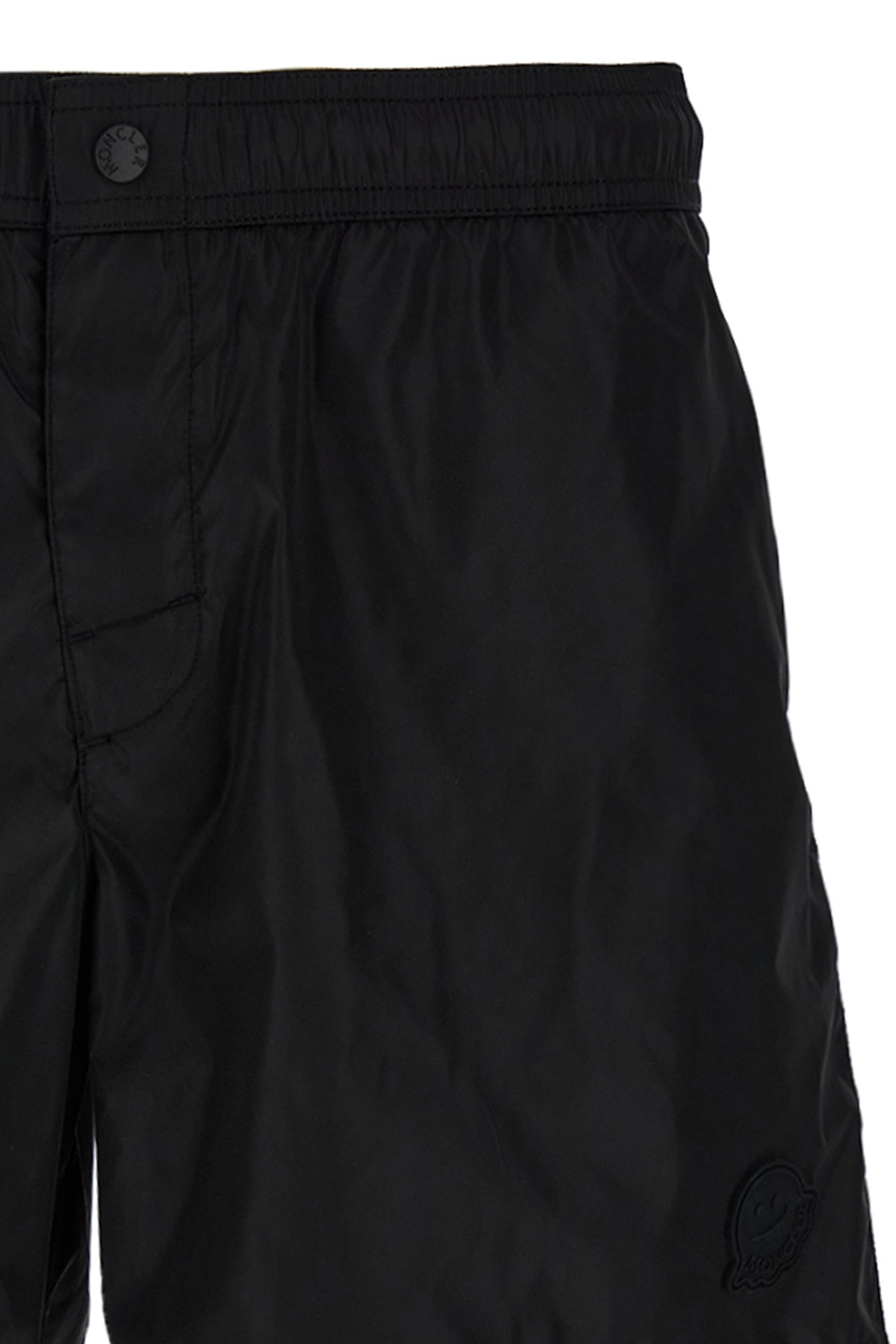 Technical nylon swimsuit, front silicone logo patch, adjustable elastic and drawstring at the waist, Velcro and snap button closure, pockets, inner mesh briefs.
