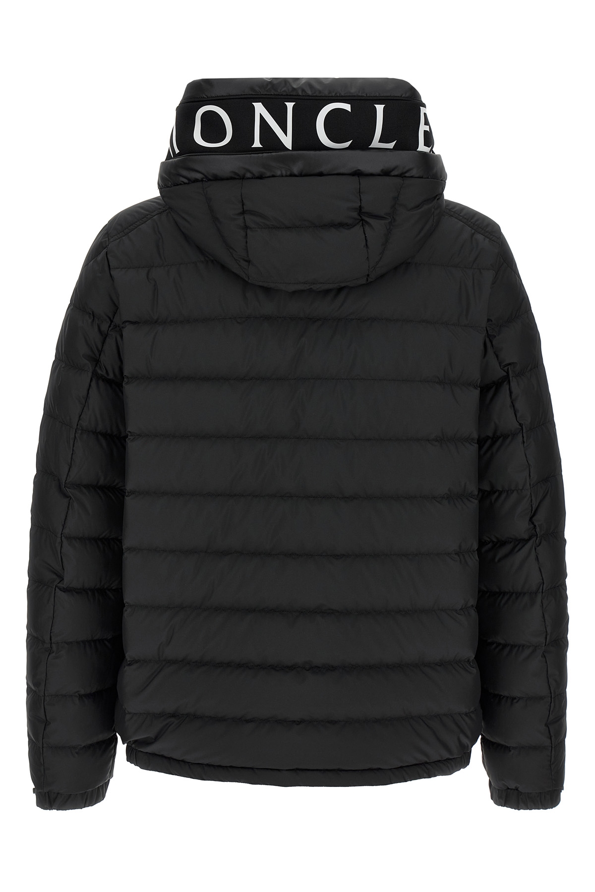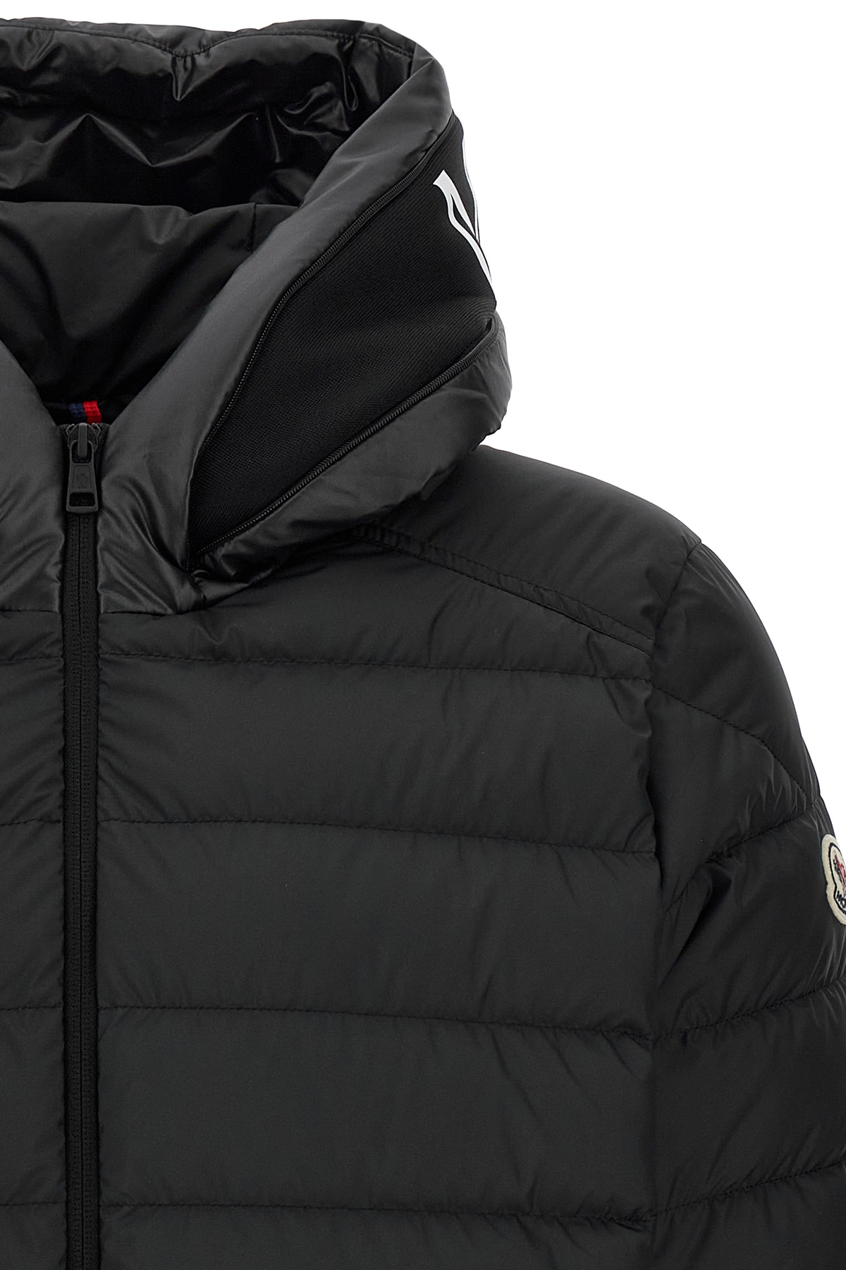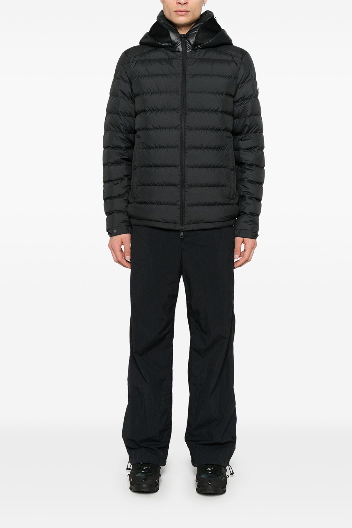 'Chevrerie' recycled polyester jacket with goose puma padding, zip closure, hood with concealed logo band via zip, pockets, long sleeves with elastic cuffs and logo patch. SUSTAINABLE: Product made from recycled polyester.