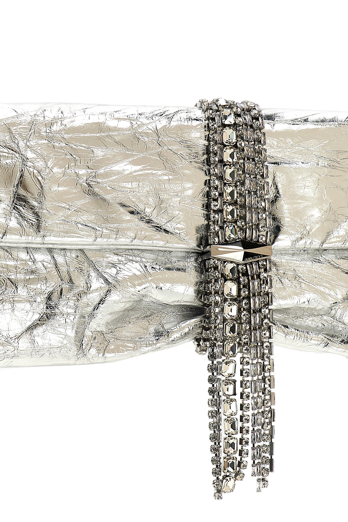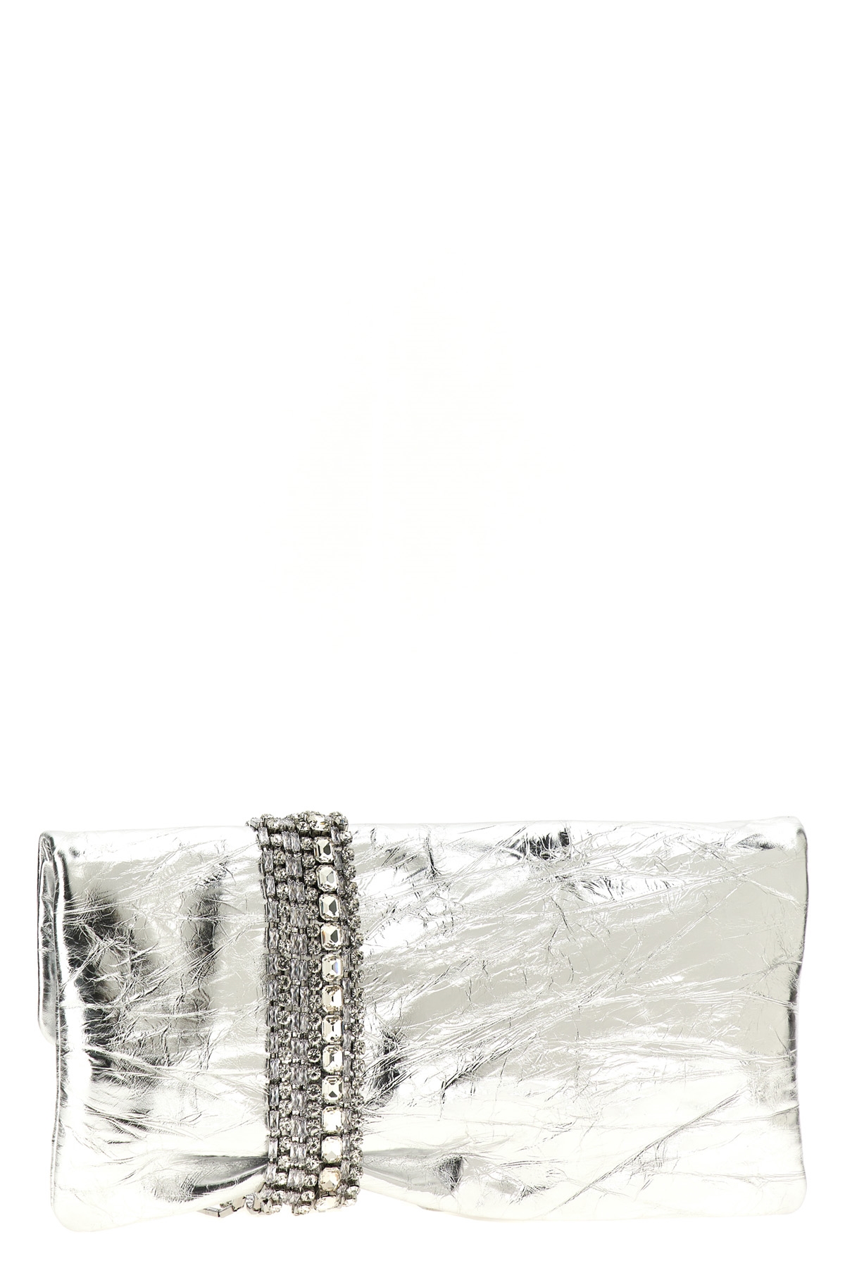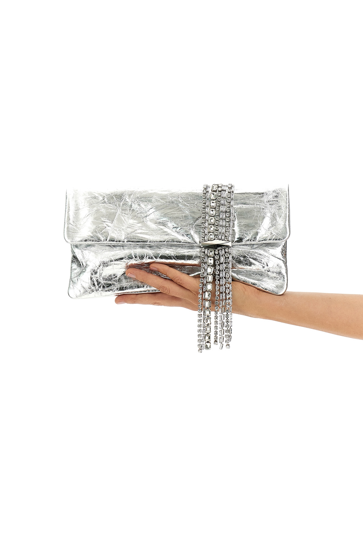'Zandra' metallic effect vintage leather clutch, pendant crystal detail, magnetic flap closure.