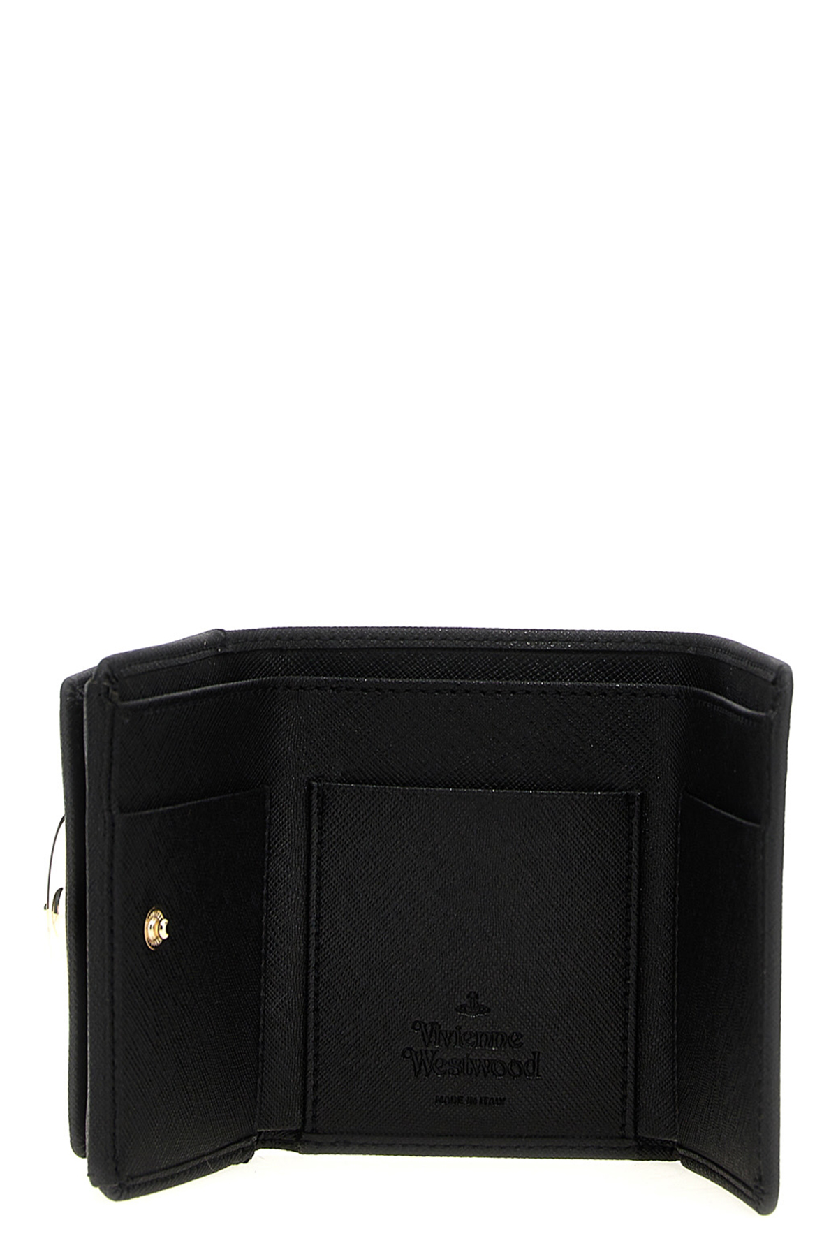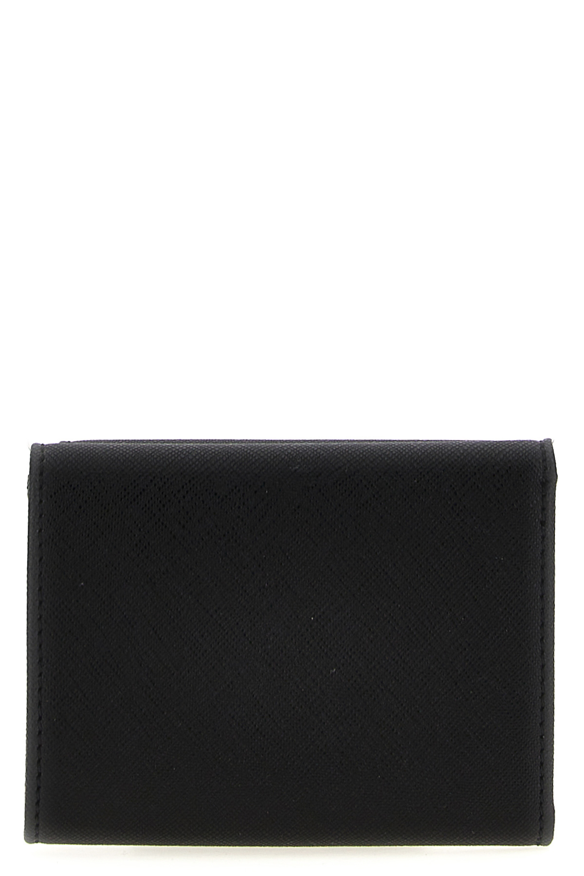 'Small Flap Purse' wallet in Saffiano-effect fabric, front metal Orb logo pocket, snap button closure, snap button closure.