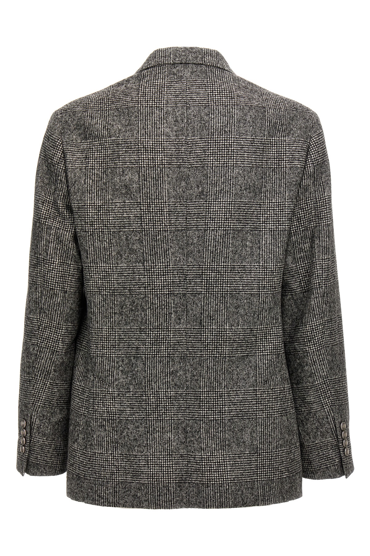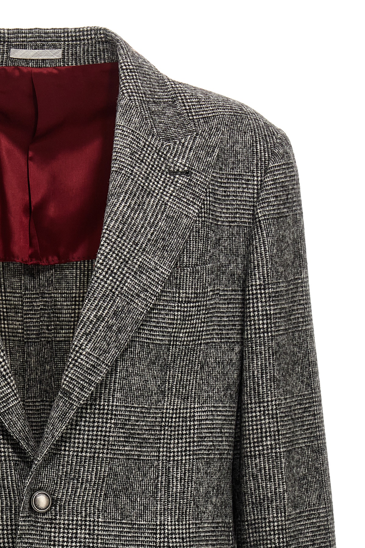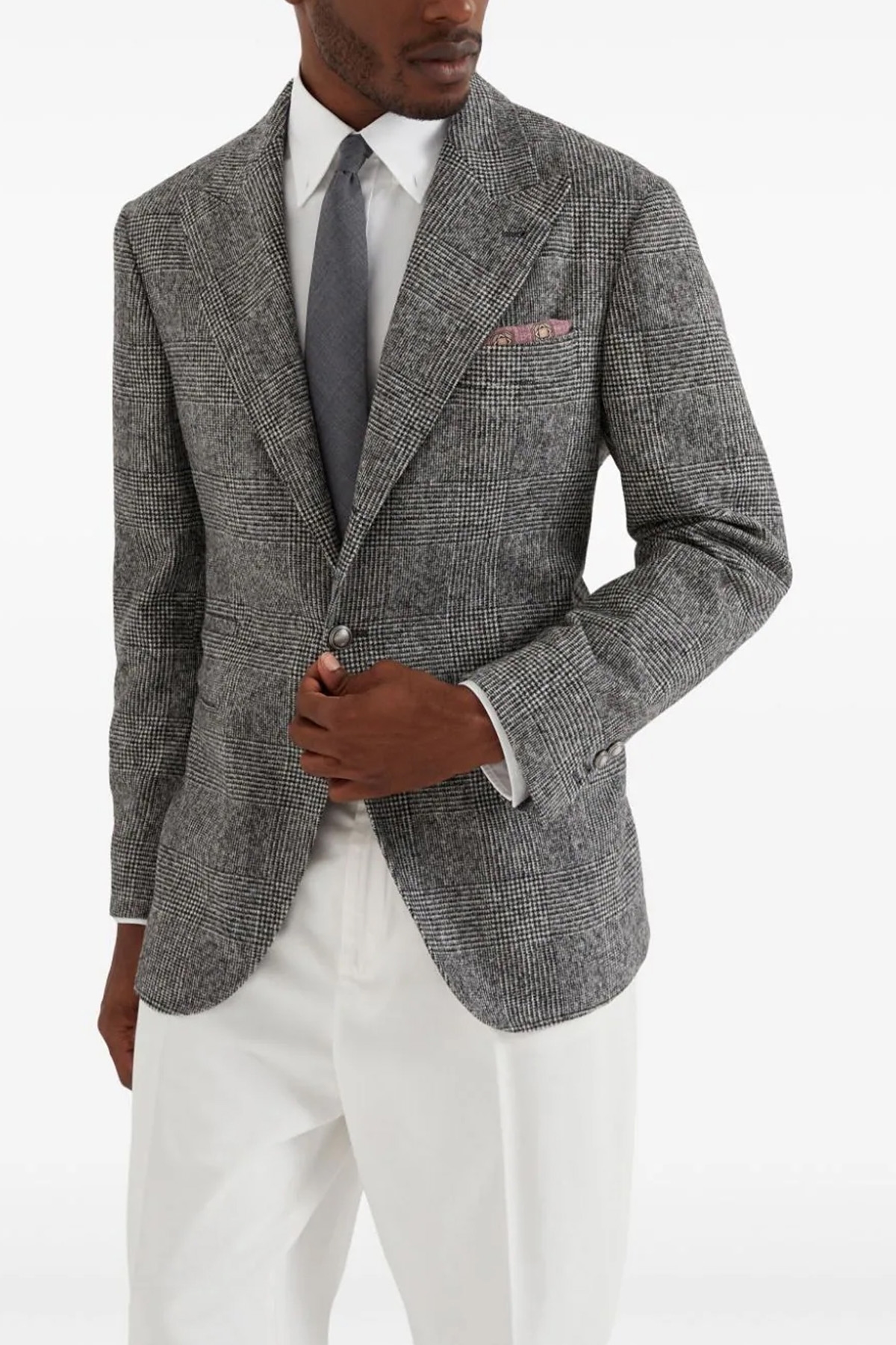 Single-breasted blazer in alpaca blend with check print, button closure, pockets, long sleeves, back vents.