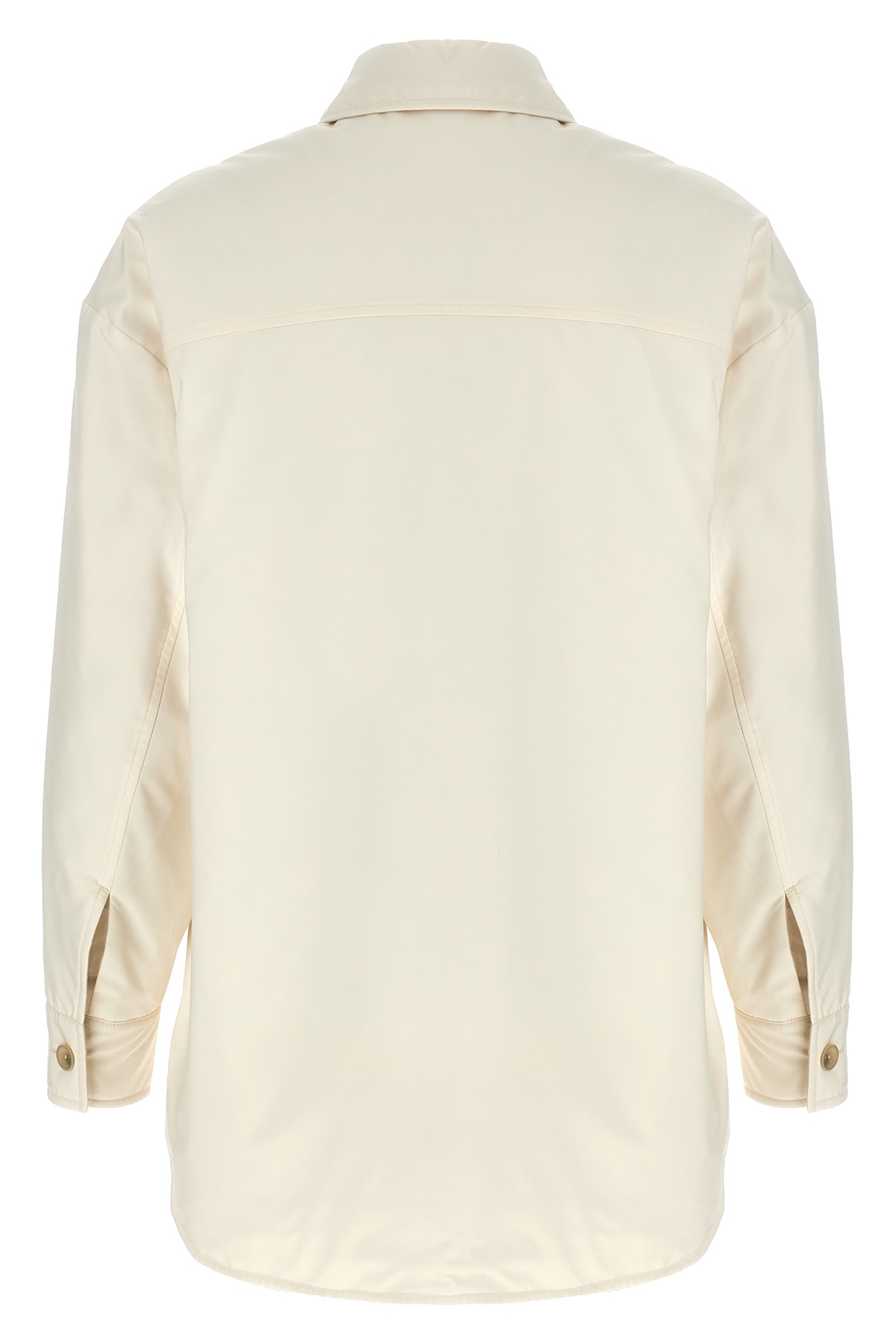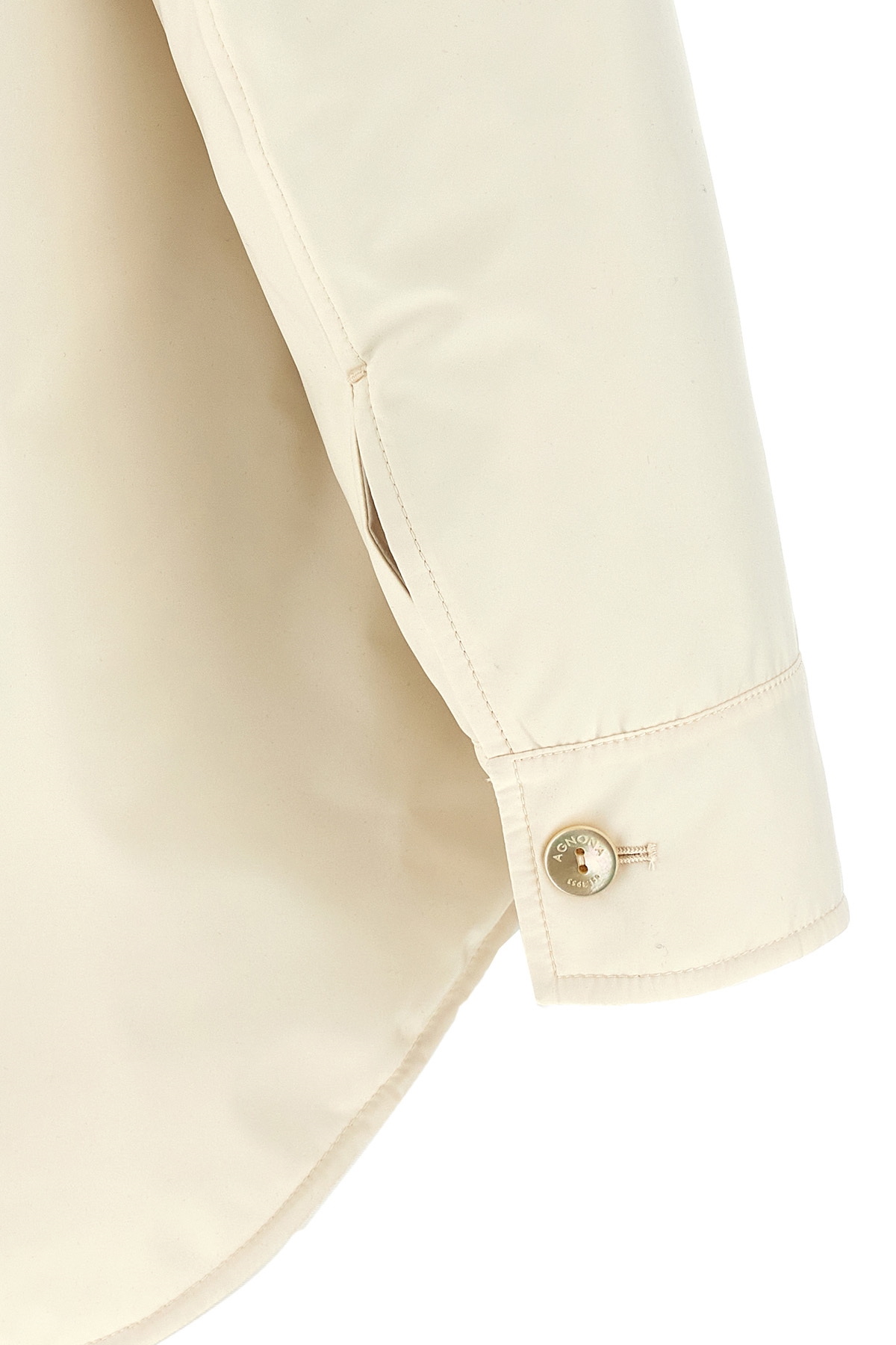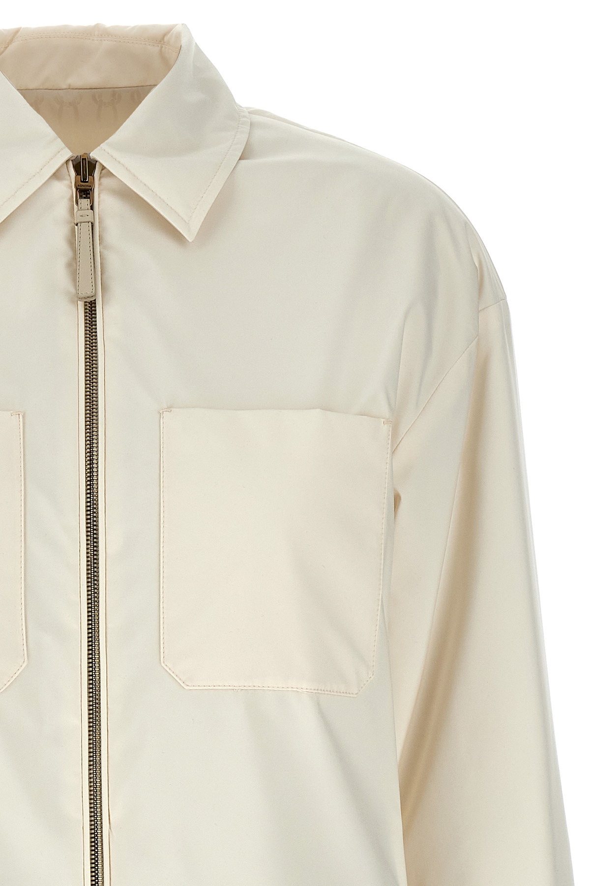 Slightly padded reversible jacket in solid color synthetic fabric and all-over monogram logo, collar, zip closure, pockets, long cuffed sleeves.