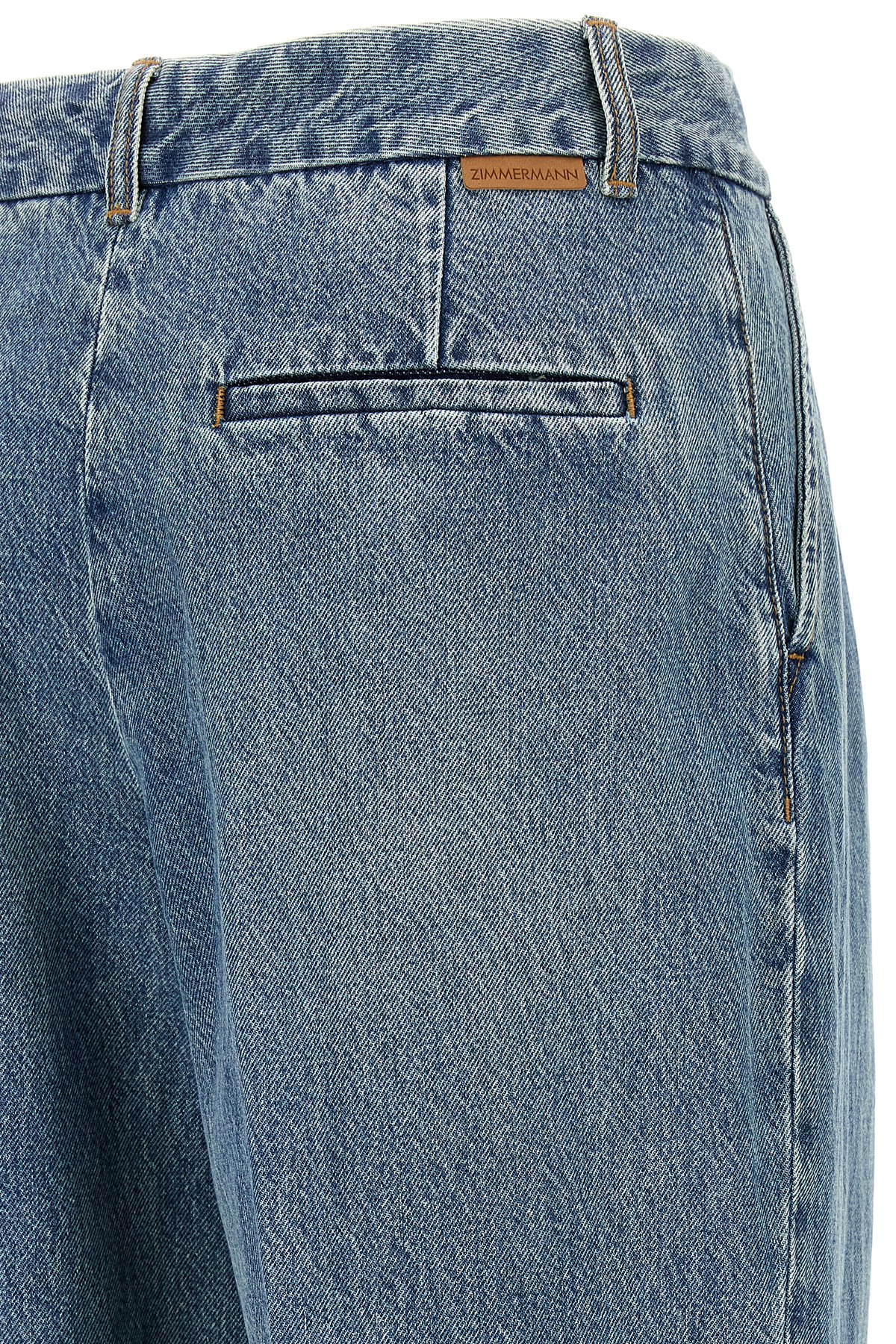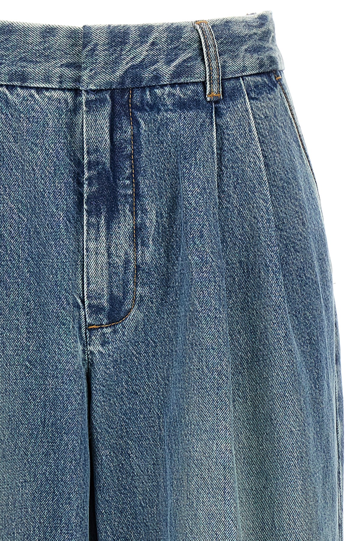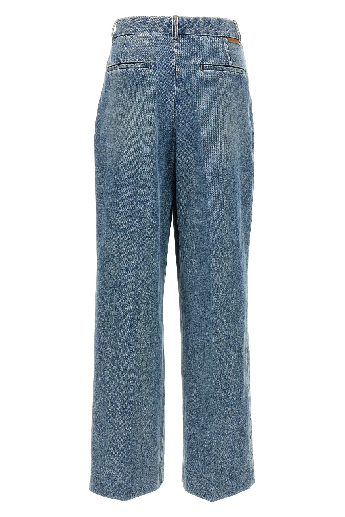 'Illustration Denim' cotton denim jeans with hook and button zip closure, pockets, wide leg with double pence.