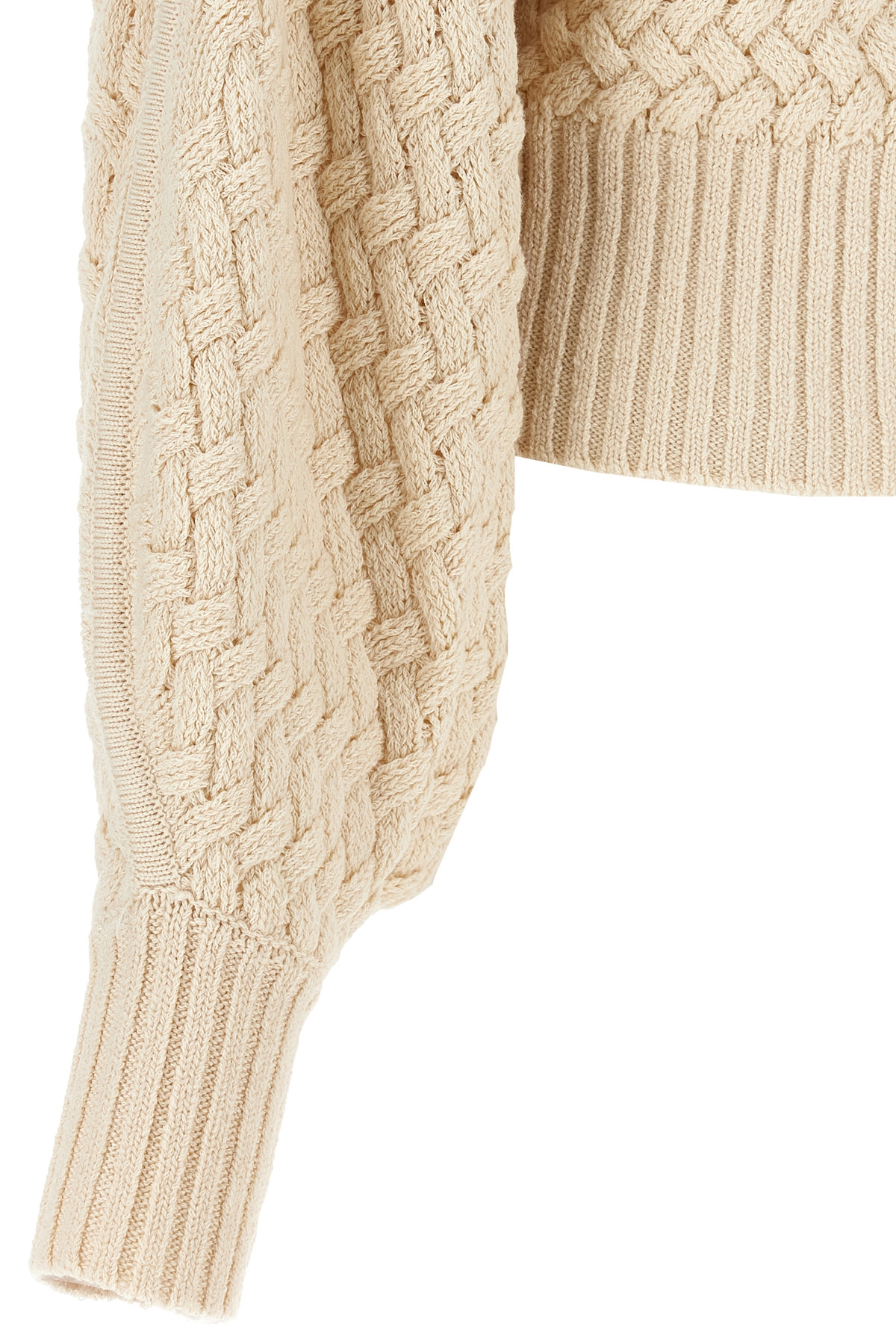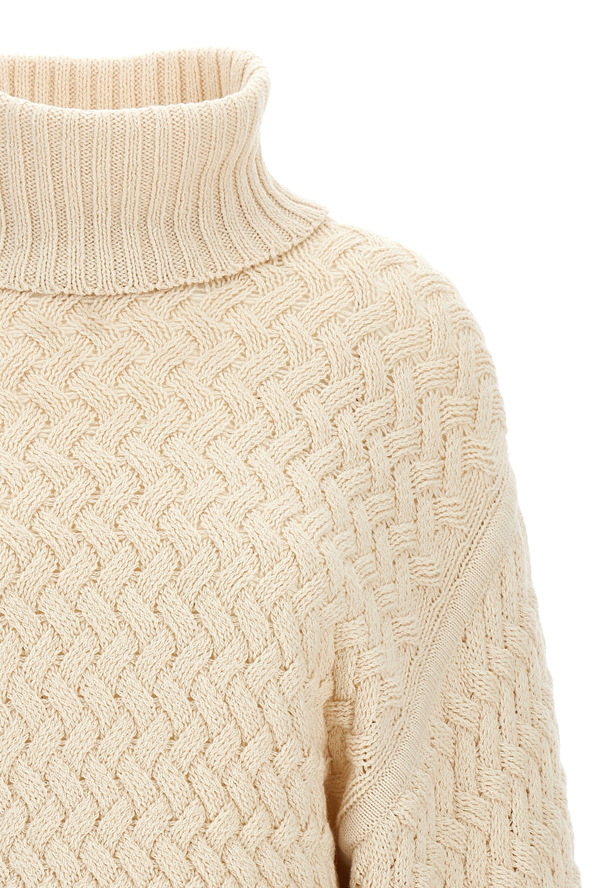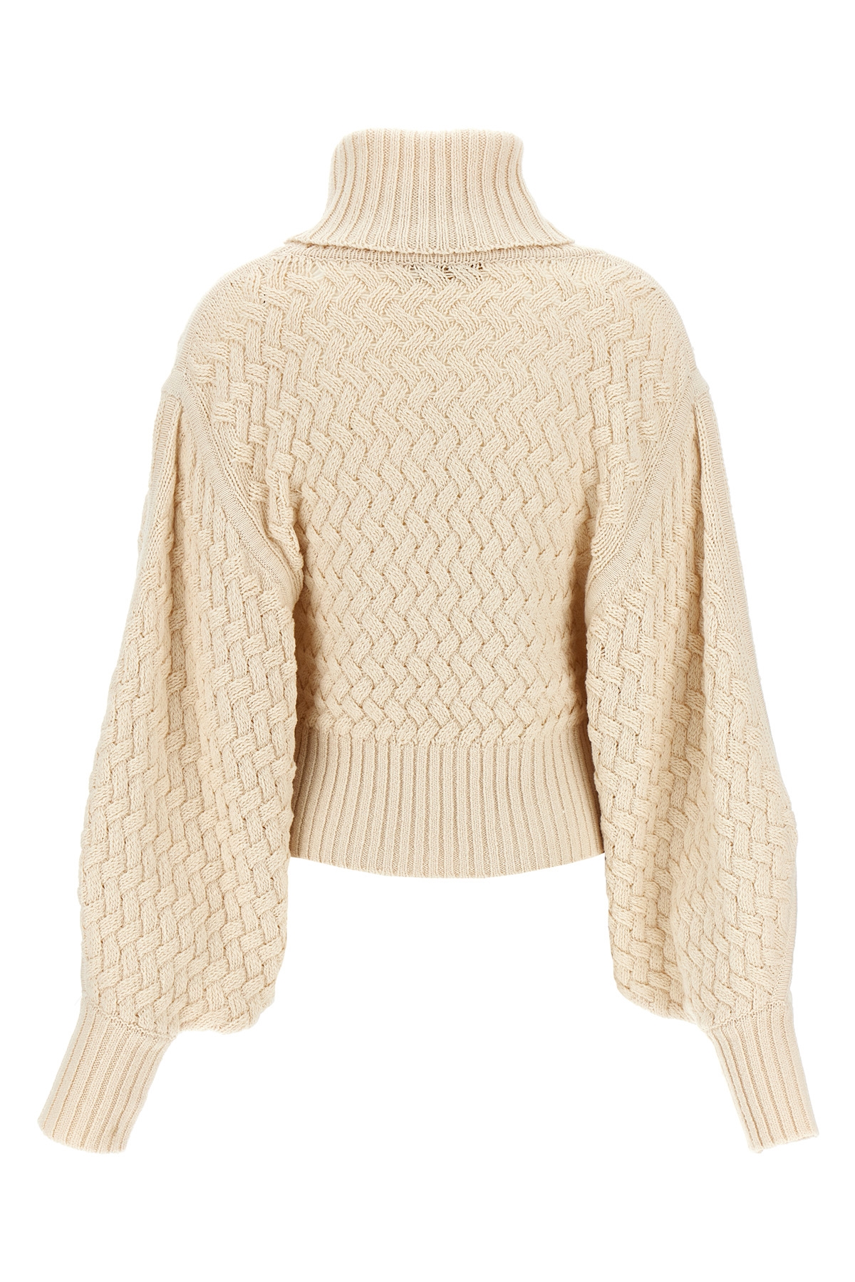 'Illustration Textured' wool and cotton blend sweater with high neck, long and wide cuffed sleeves.