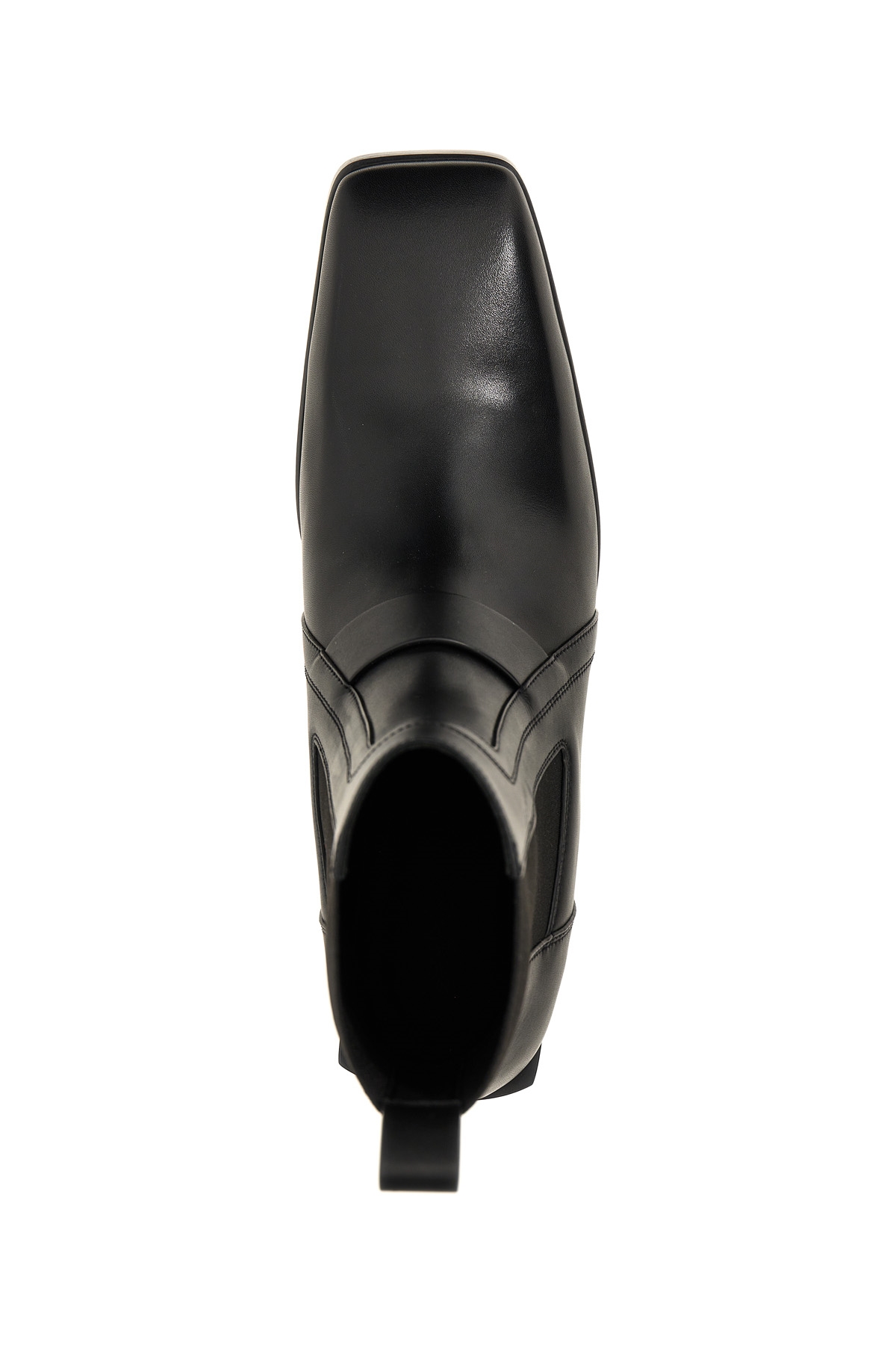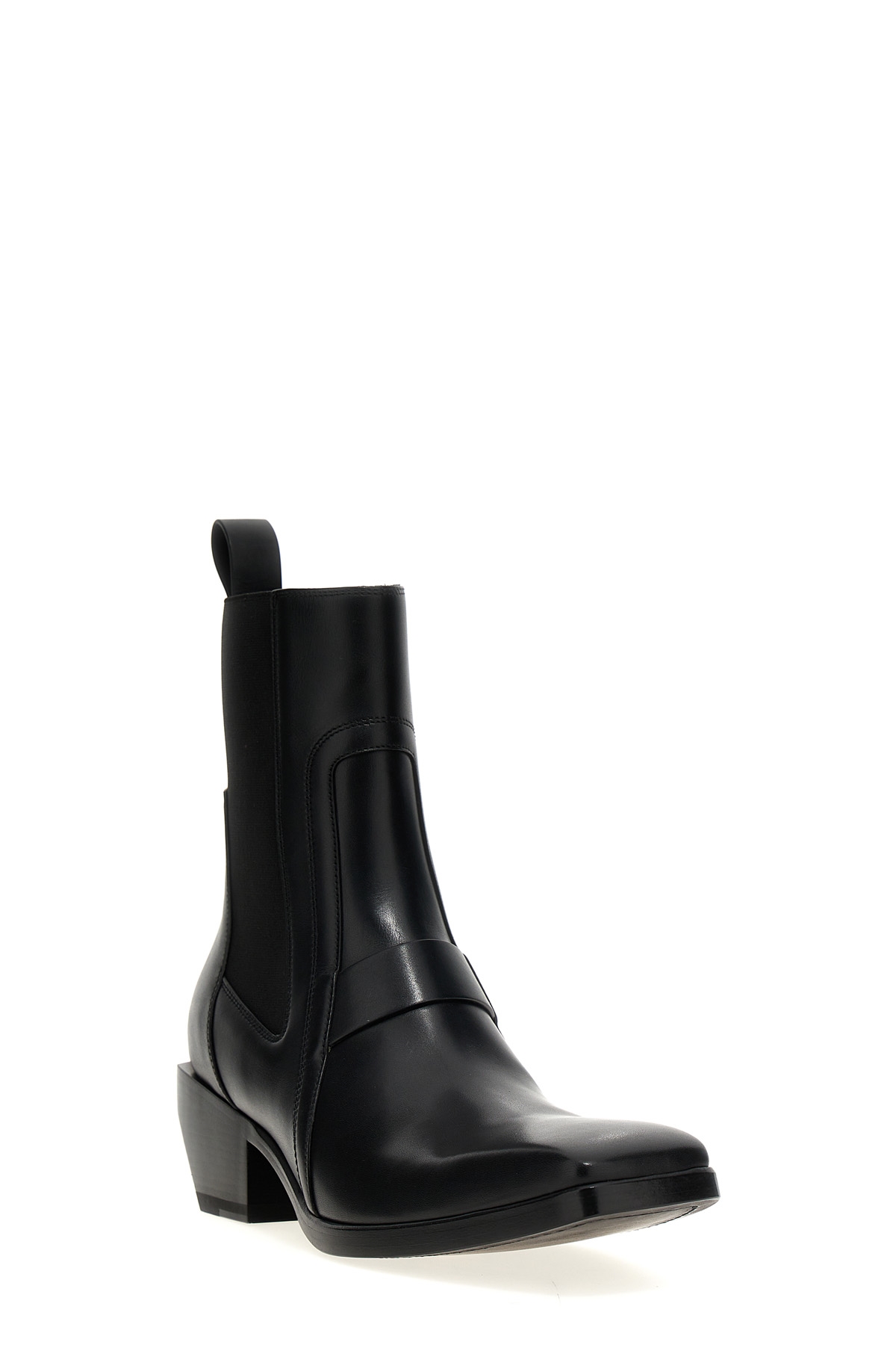 'Heeled silver' leather boots, pointed toe with heel and side elastic.