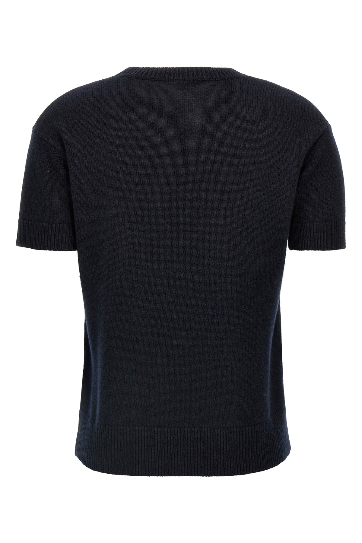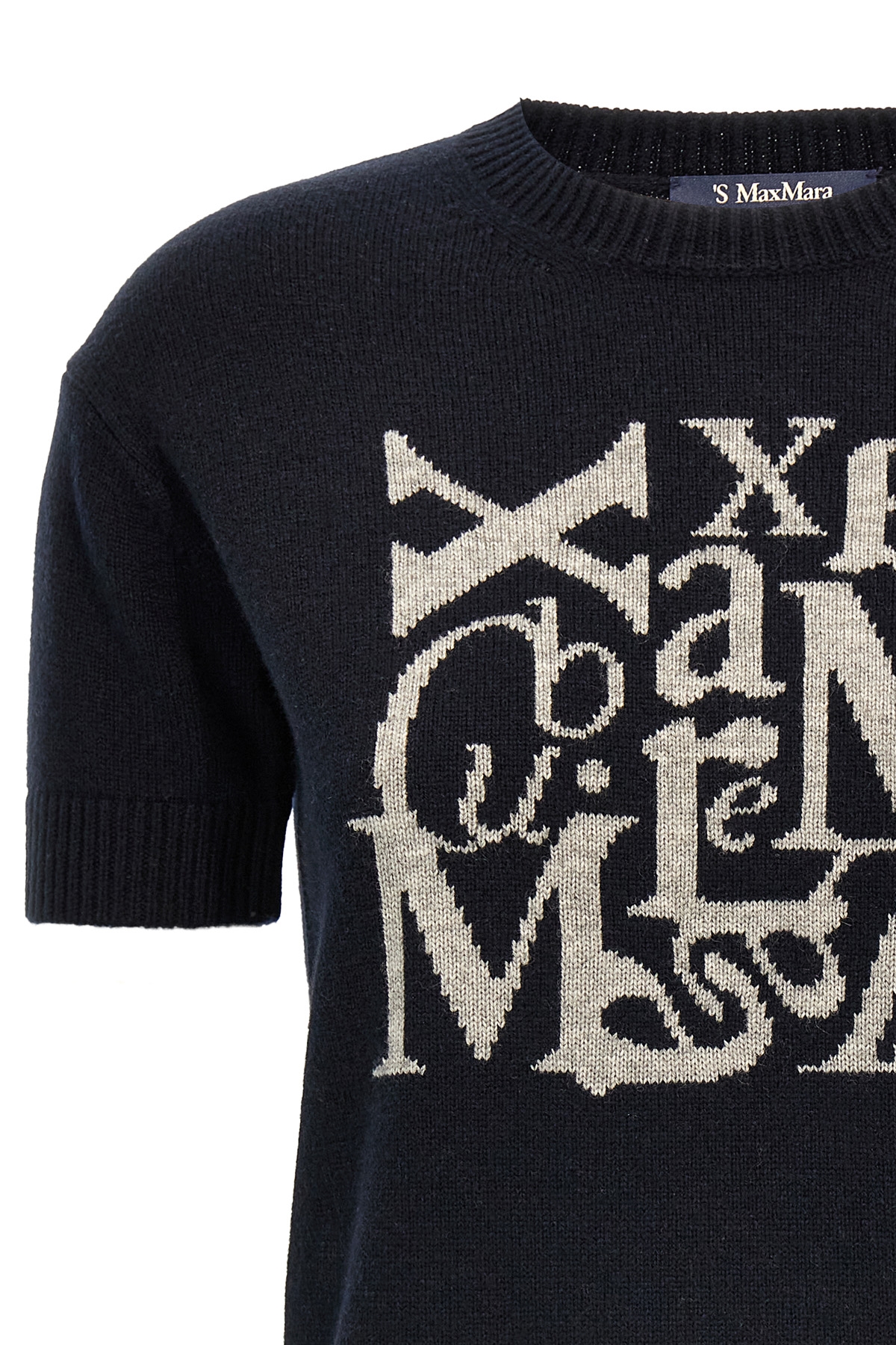 'Felicia' cashmere blend sweater with front logo intarsia, crew neck, short sleeves.