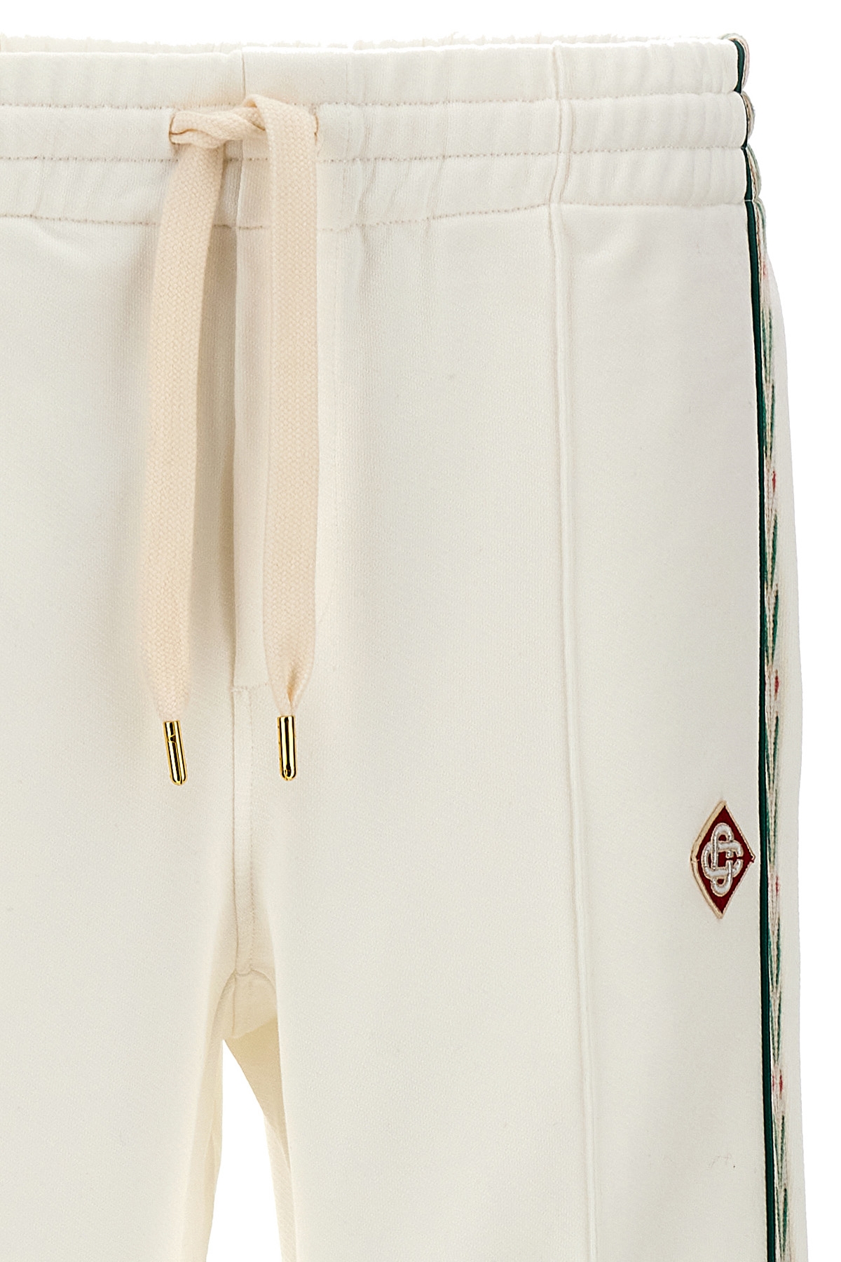 'Laurel Tape Panelled' cotton joggers with contrast side bands, drawstring elastic waistband, pockets.
