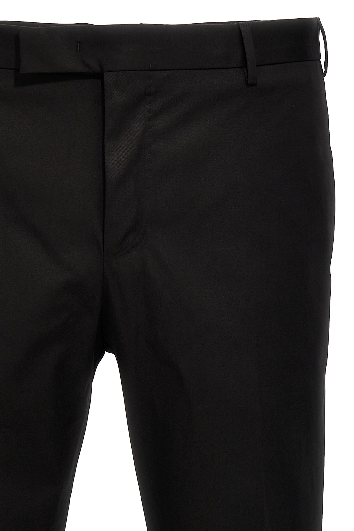 'Dieci' stretch cotton pants, hook and button zip closure, pockets, leg with stretched crease.