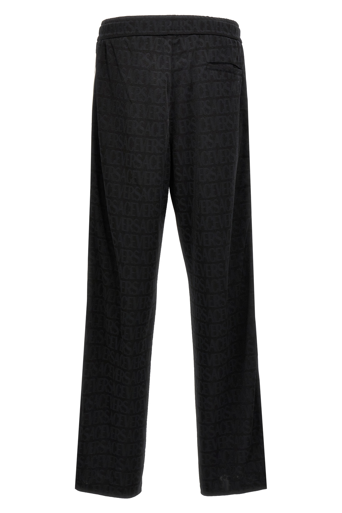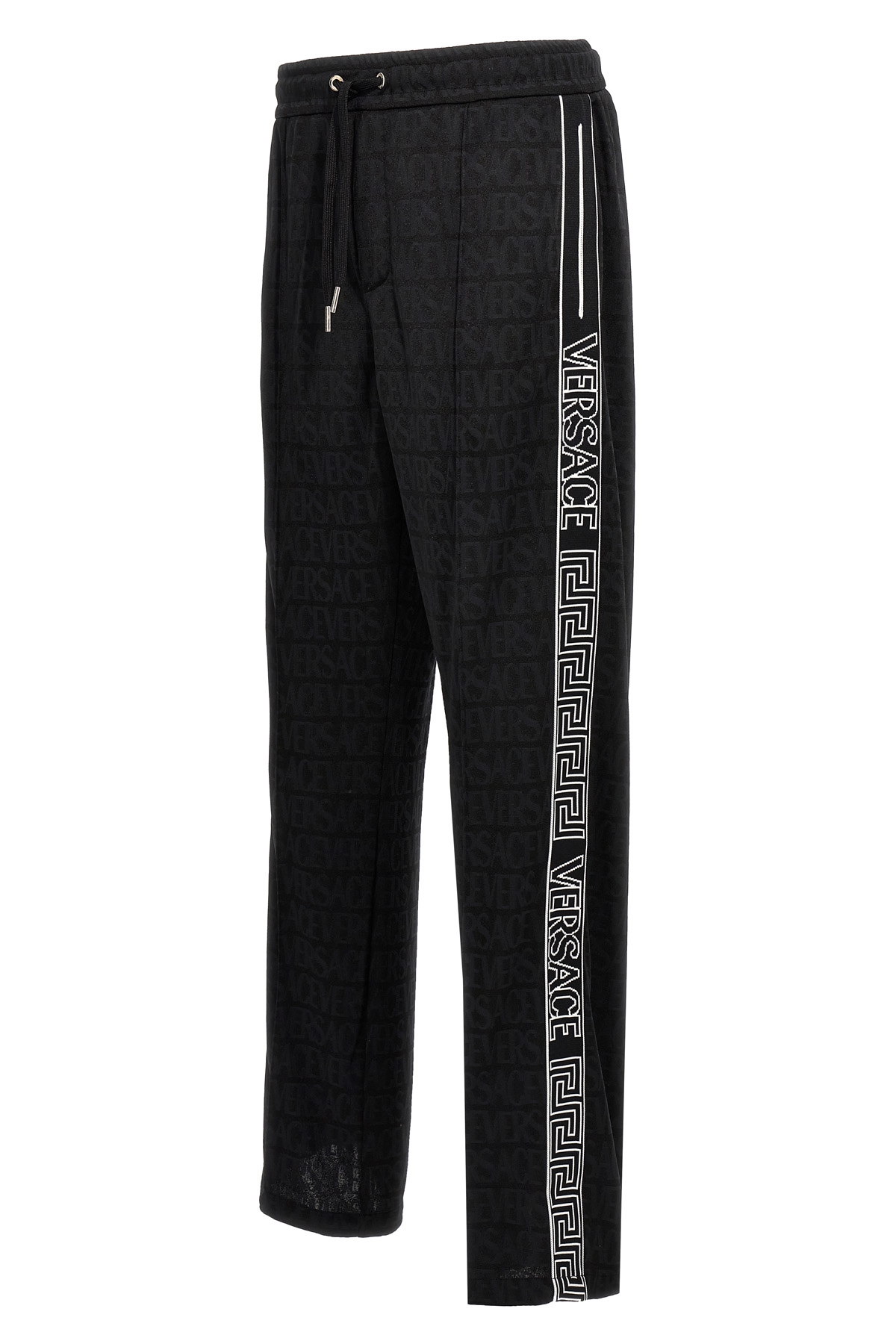 Joggers in technical fabric with all-over logo pattern, side bands with contrasting logo, elastic and 2drawstring at the waist, pockets.