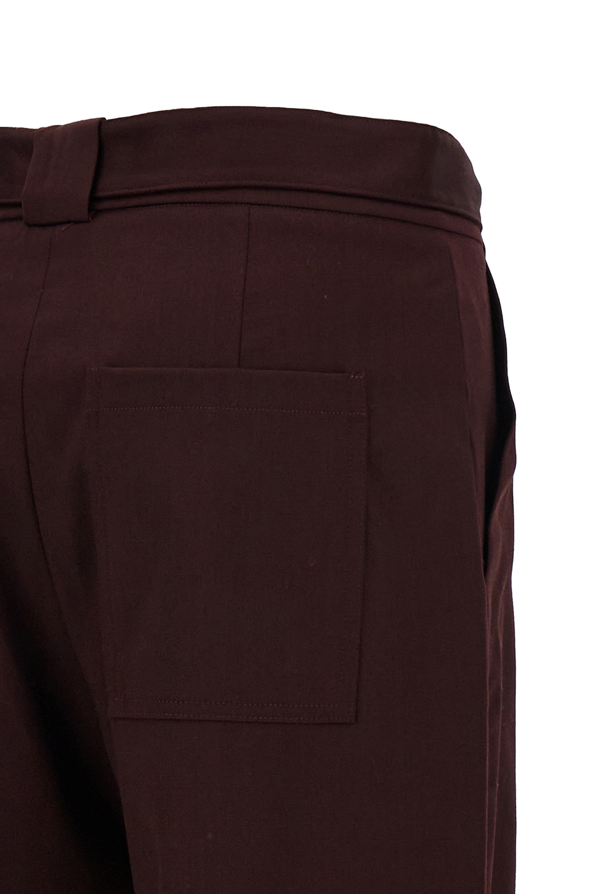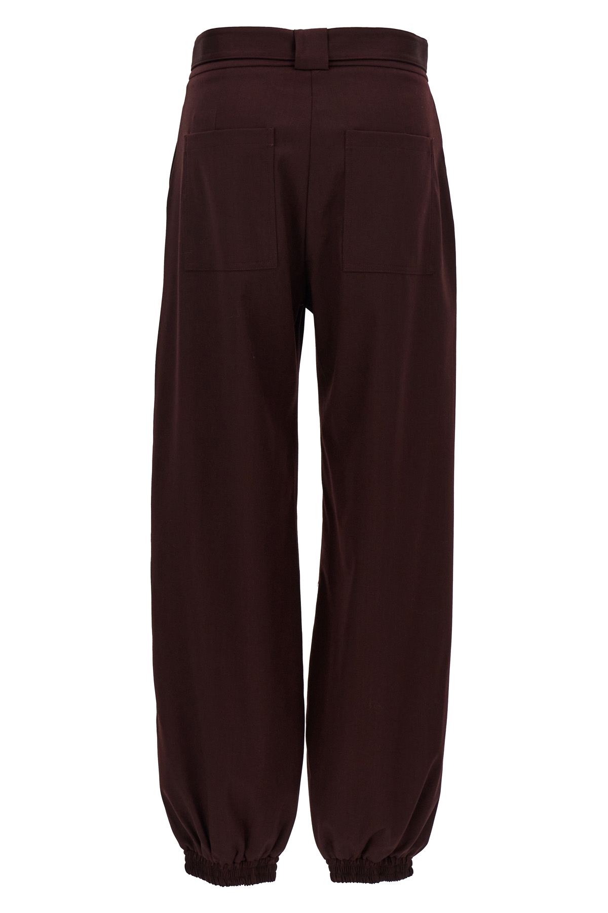 'Caproni' wool blend pants, zip and button closure, belt at the waist, pockets, elastic ankle cuffs.