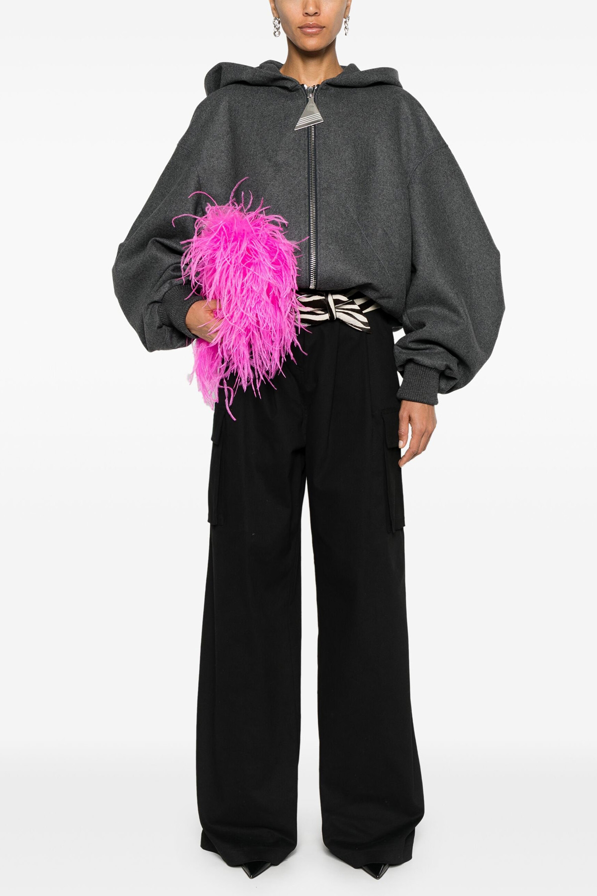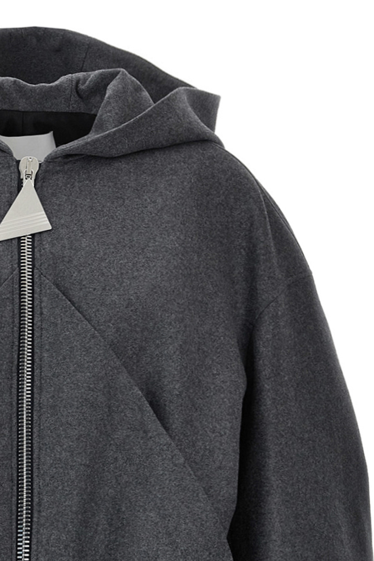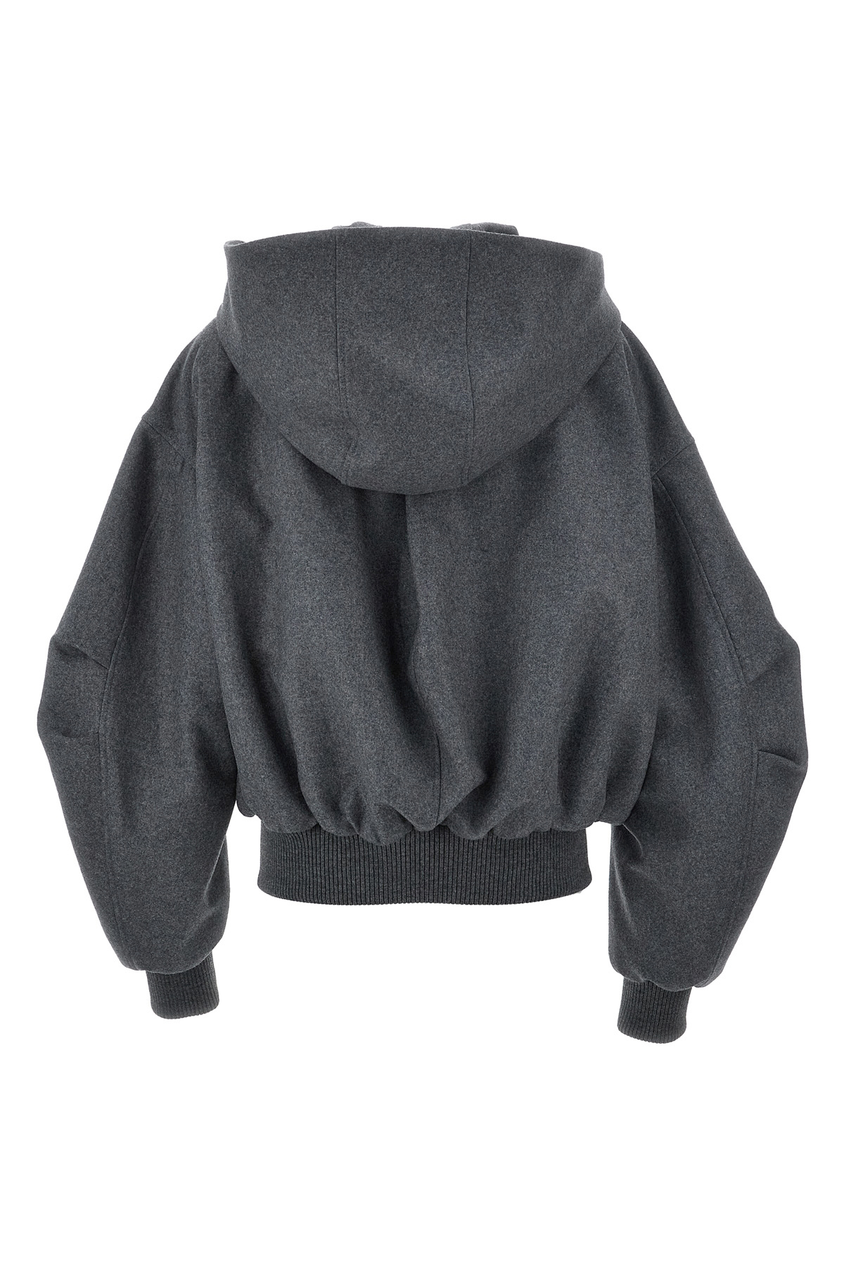 Jn wool and cashmere hooded bomber jacket, zip closure with logo puller, pockets, long sleeves with knitted cuffs.