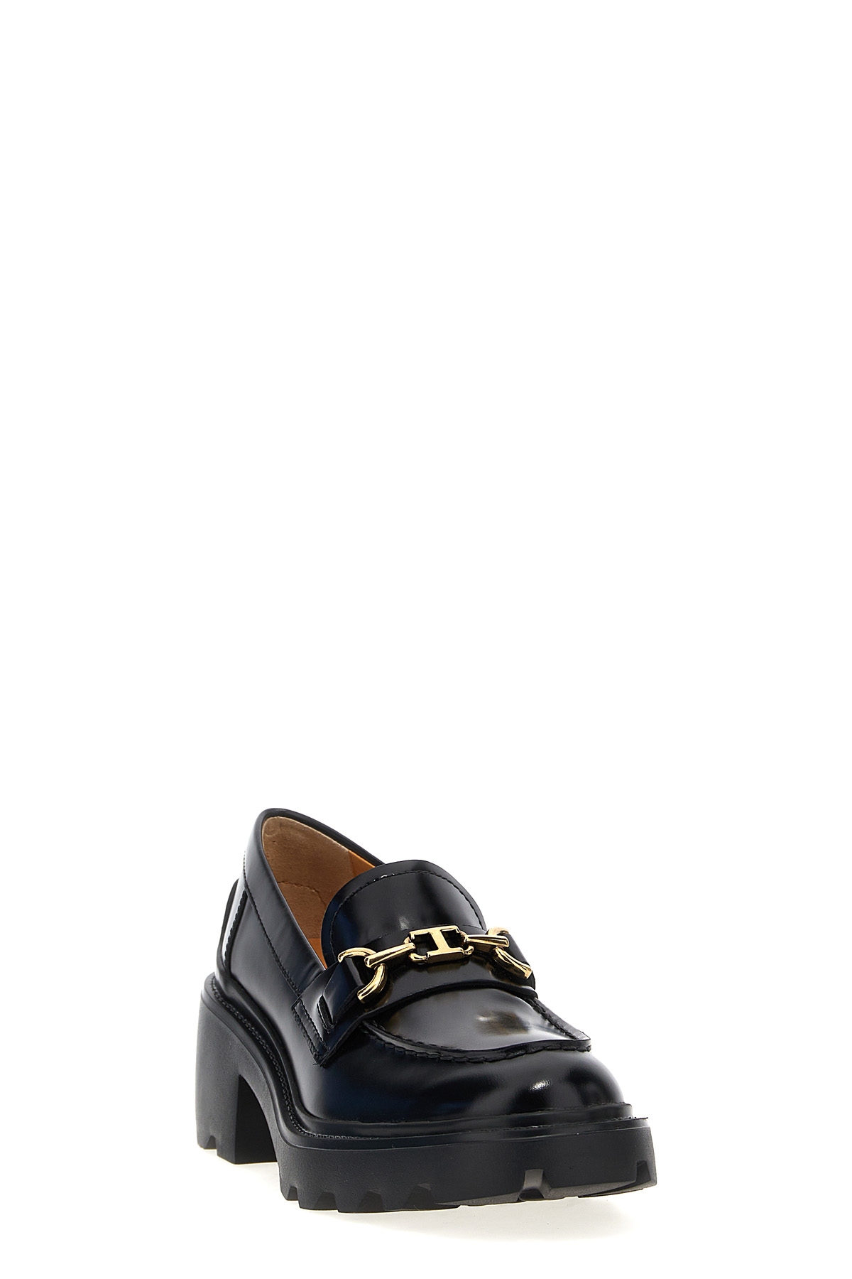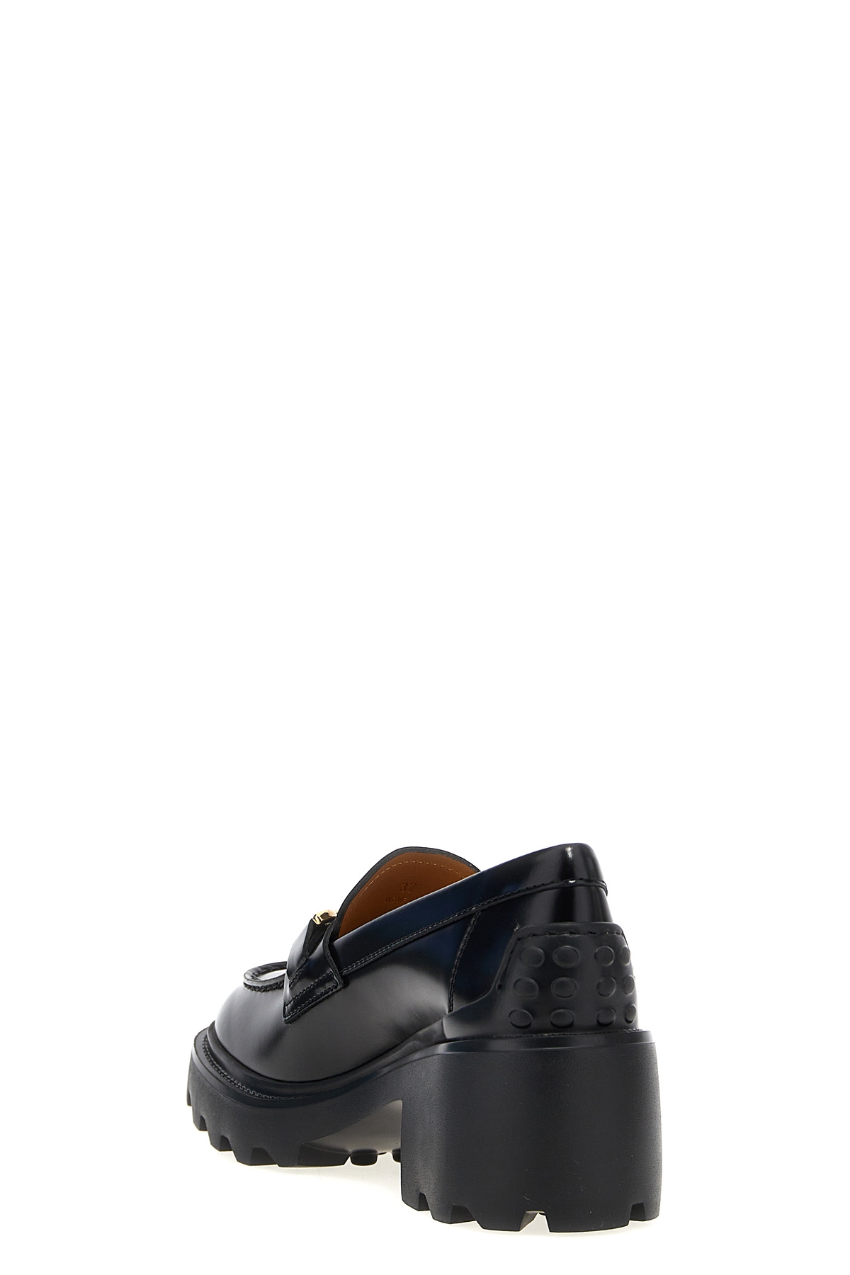 'Gomma Carro' leather loafers with clamp detail with front logo, rubber tank sole.