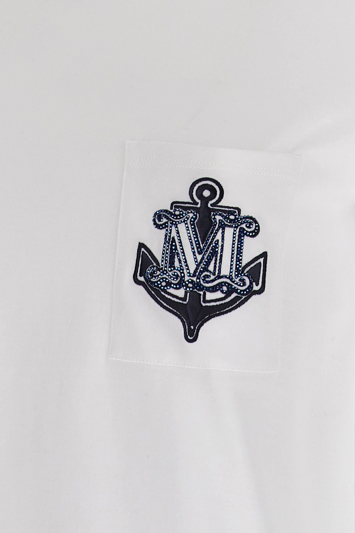 'Acacia' cotton, crewneck t-shirt, front breast pocket with logo embroidery and rhinestones, short sleeves.