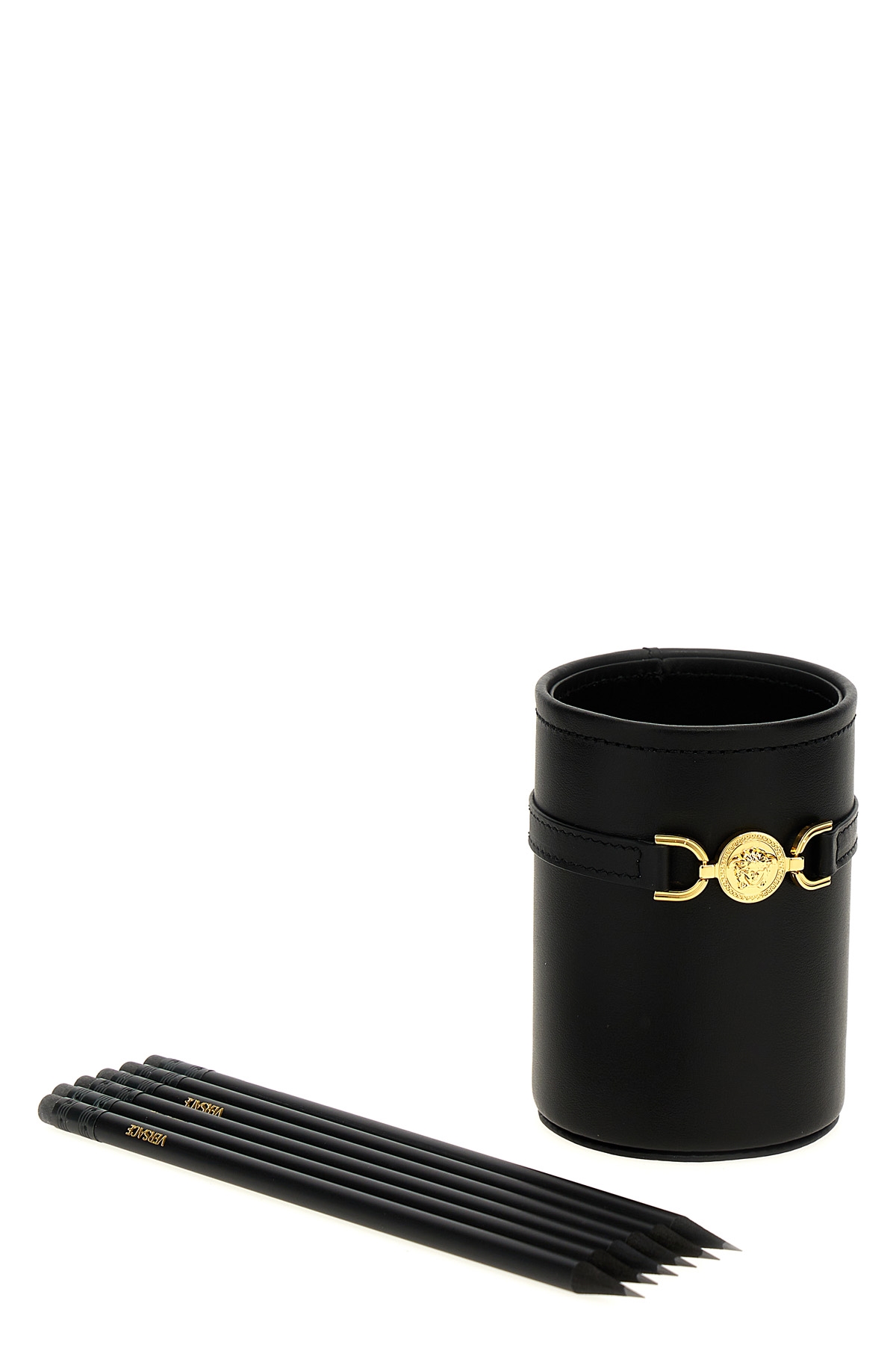 Leather pen holder with 'Medusa 95' logo complete with 6 logo pencils