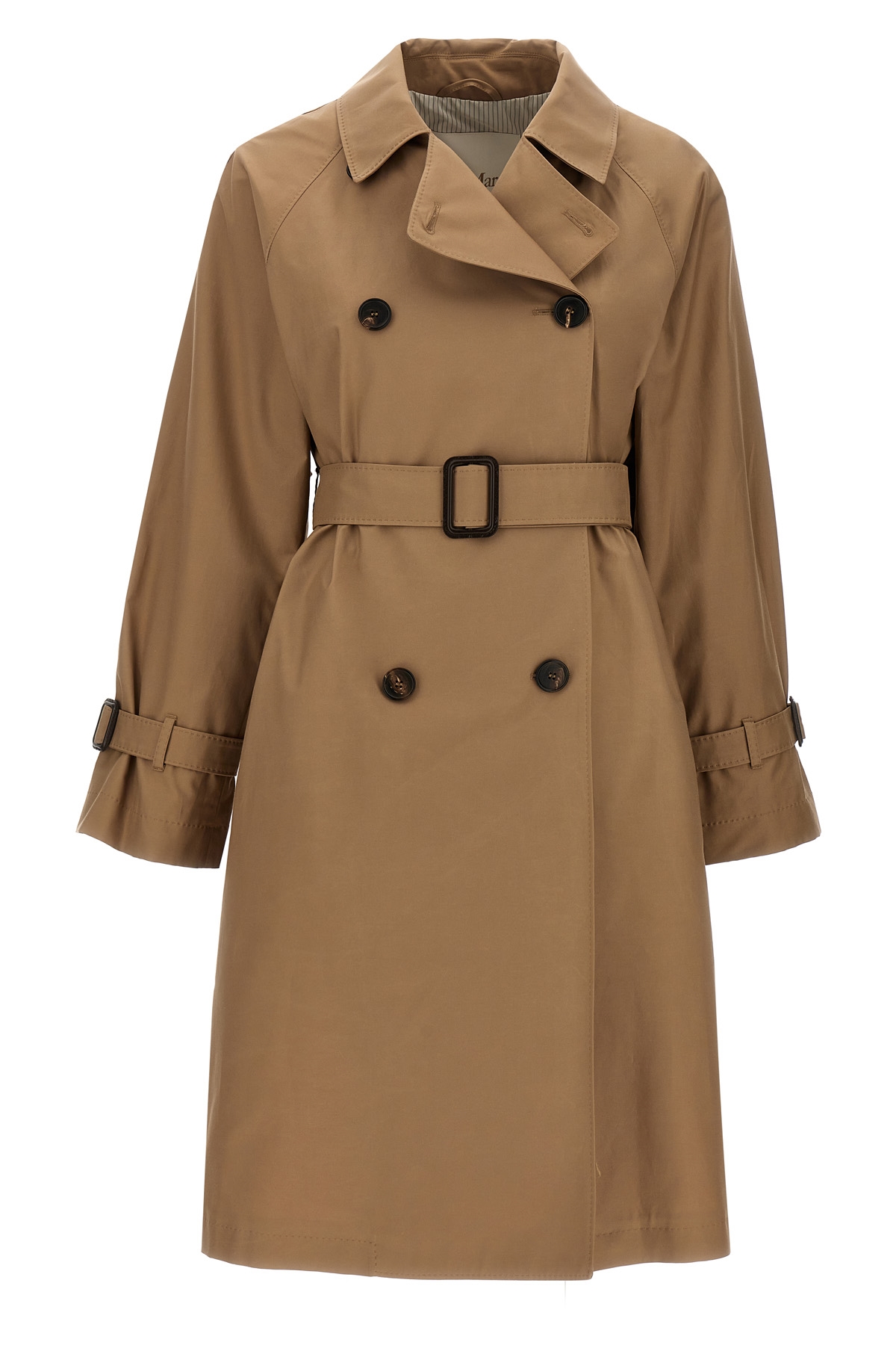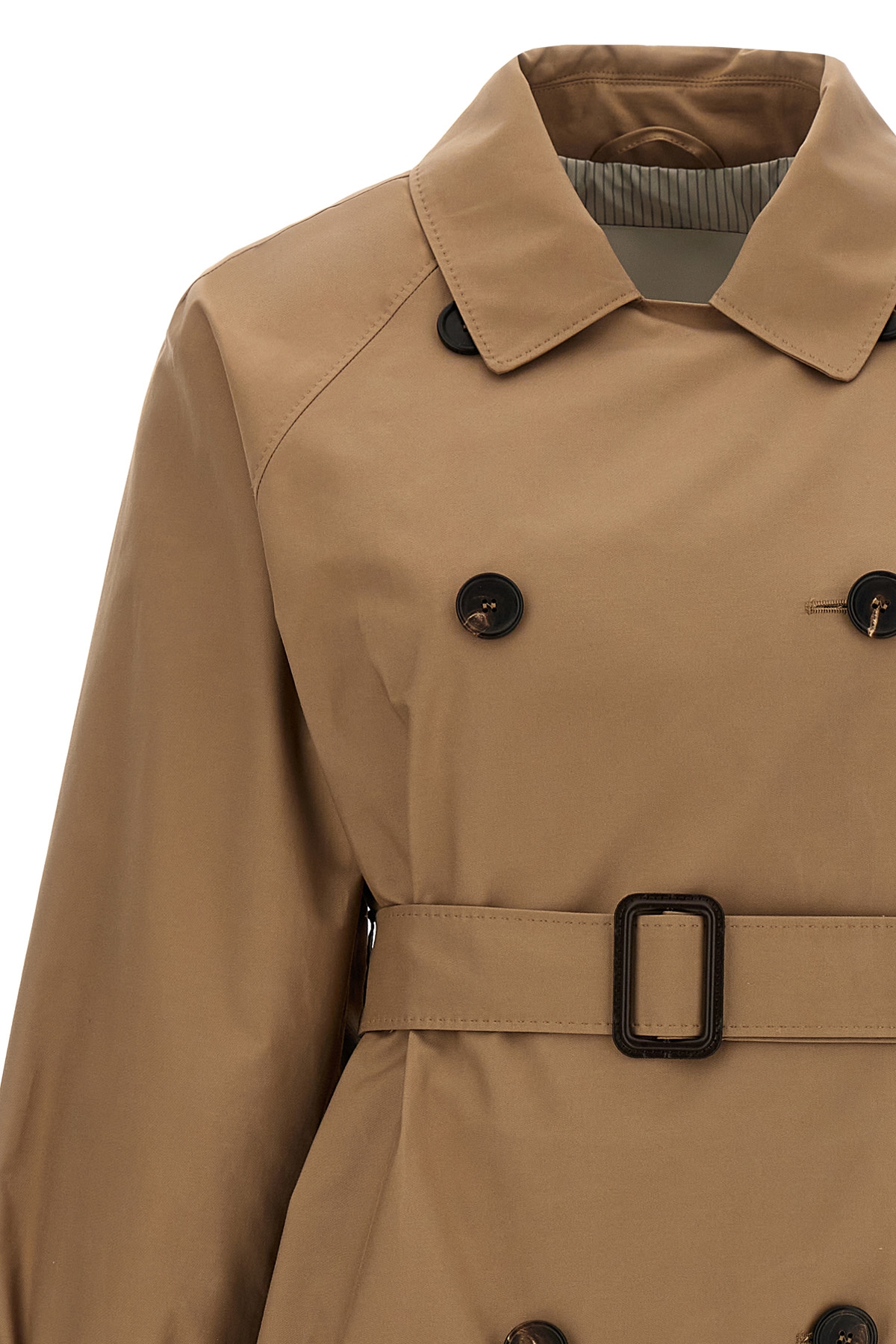 'Ctrench' medium length cotton blend trench coat with double-breasted button closure, adjustable and removable belt at the waist, long cuffed sleeves, back split.