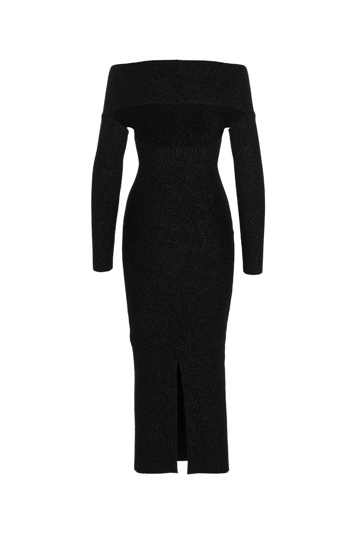 Mariasole' lurex wool blend dress with boat neckline, back cut out detail, long sleeves and a slit at the back.