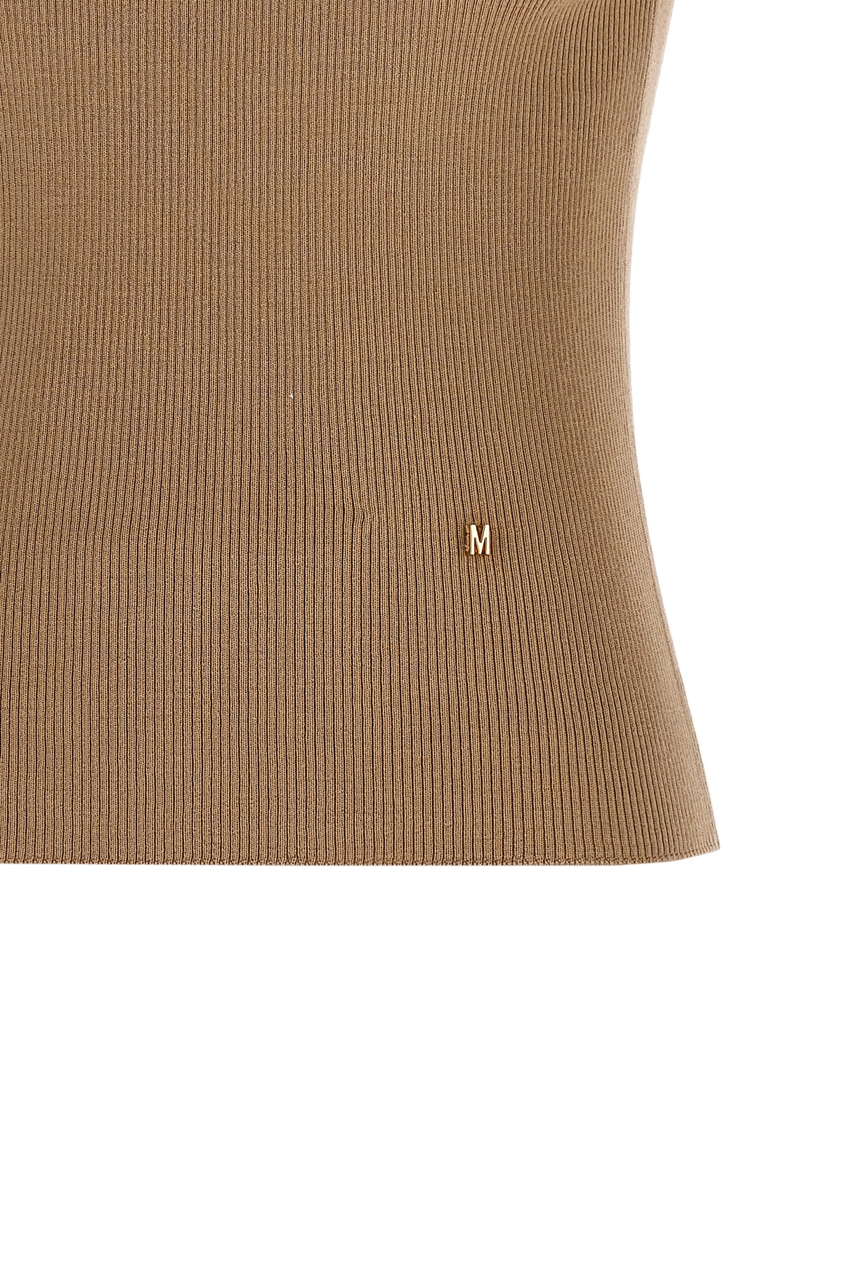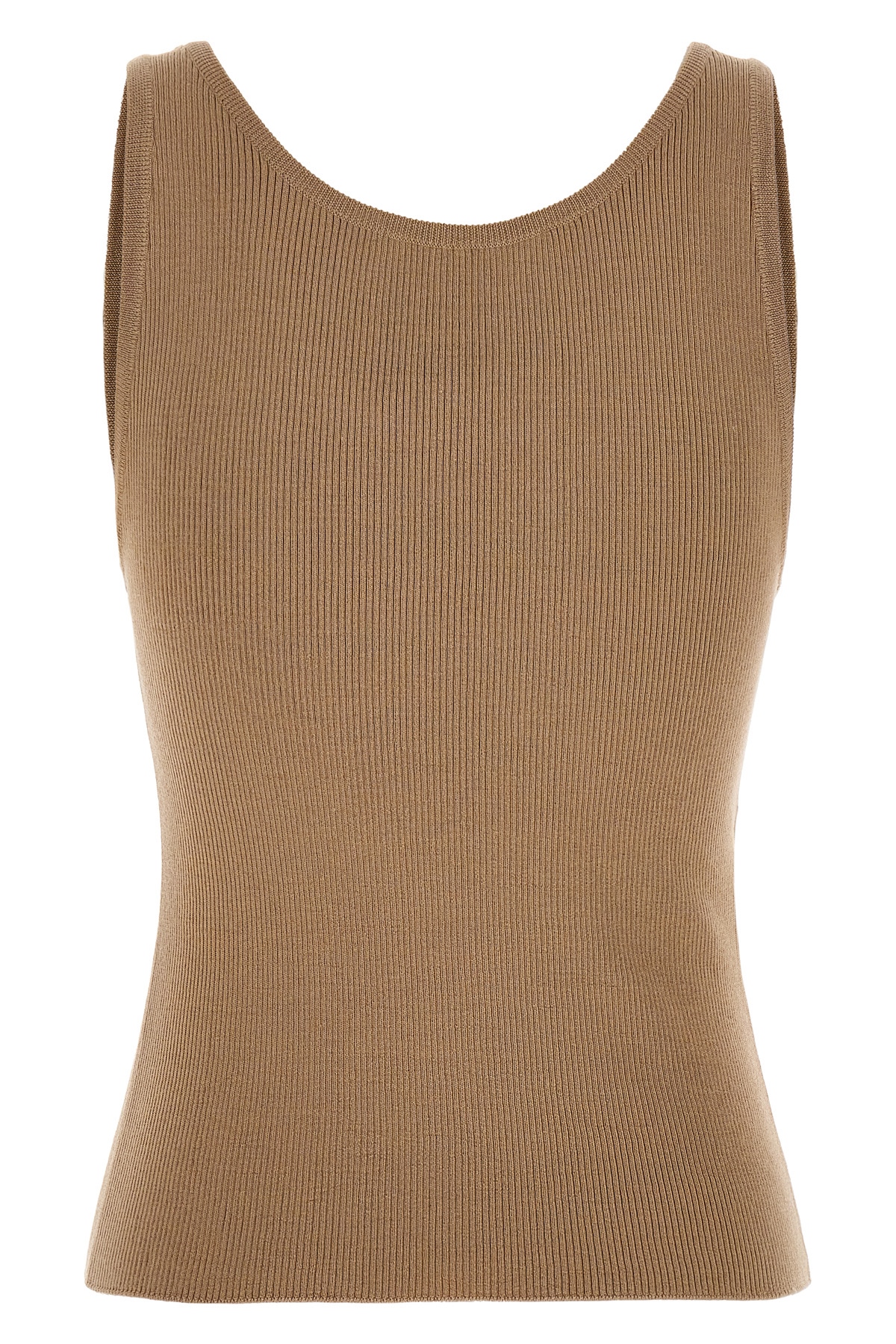 Sleeveless top in silk blend knit with round neckline, metal application.