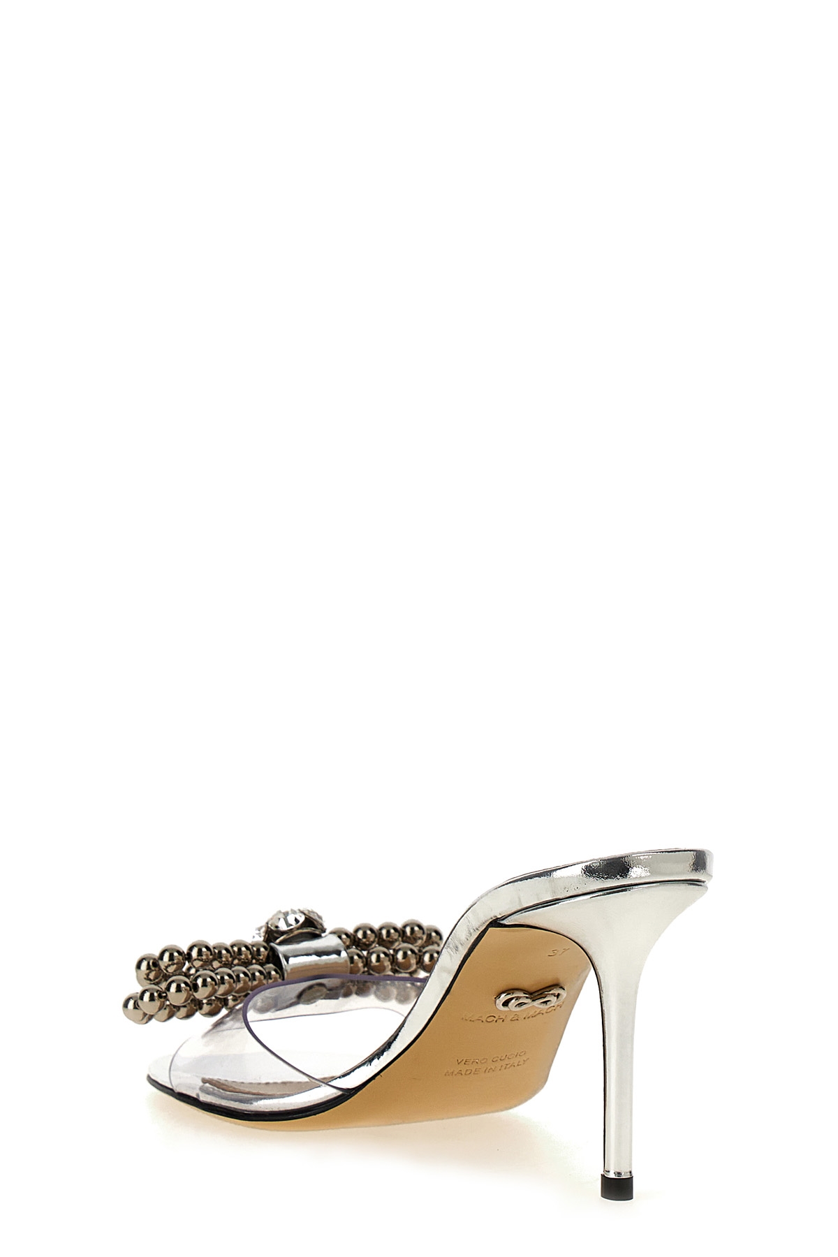 'Stud bow' sandals in transparent PVC with front jewel application, front opening, strapless, heel.