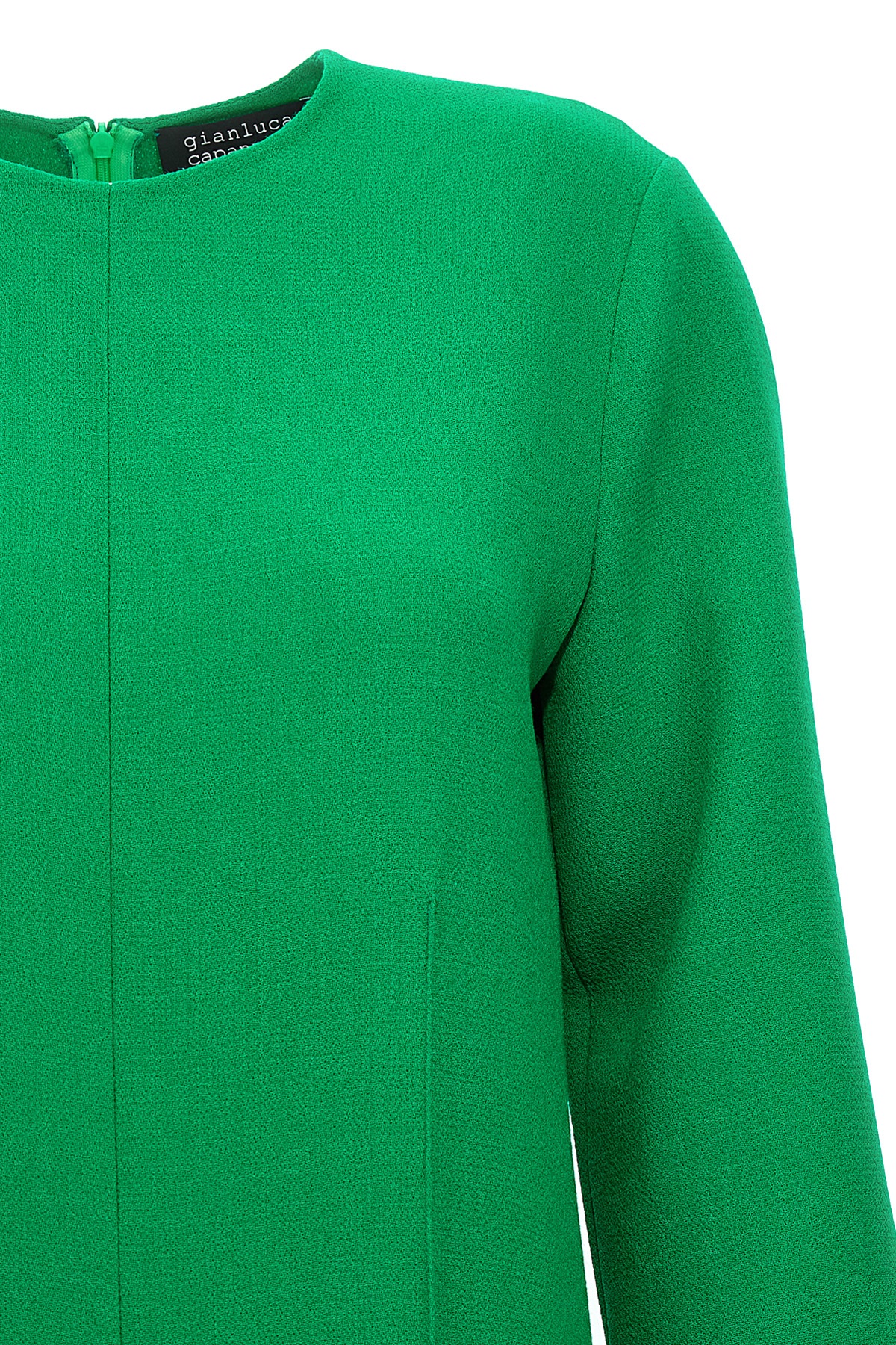 'Antonia' wool jumpsuit with crew neck, long sleeves, back zip closure.