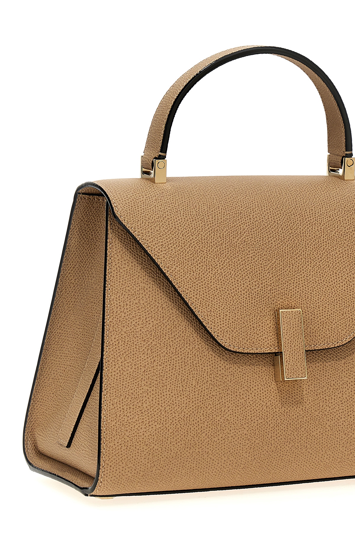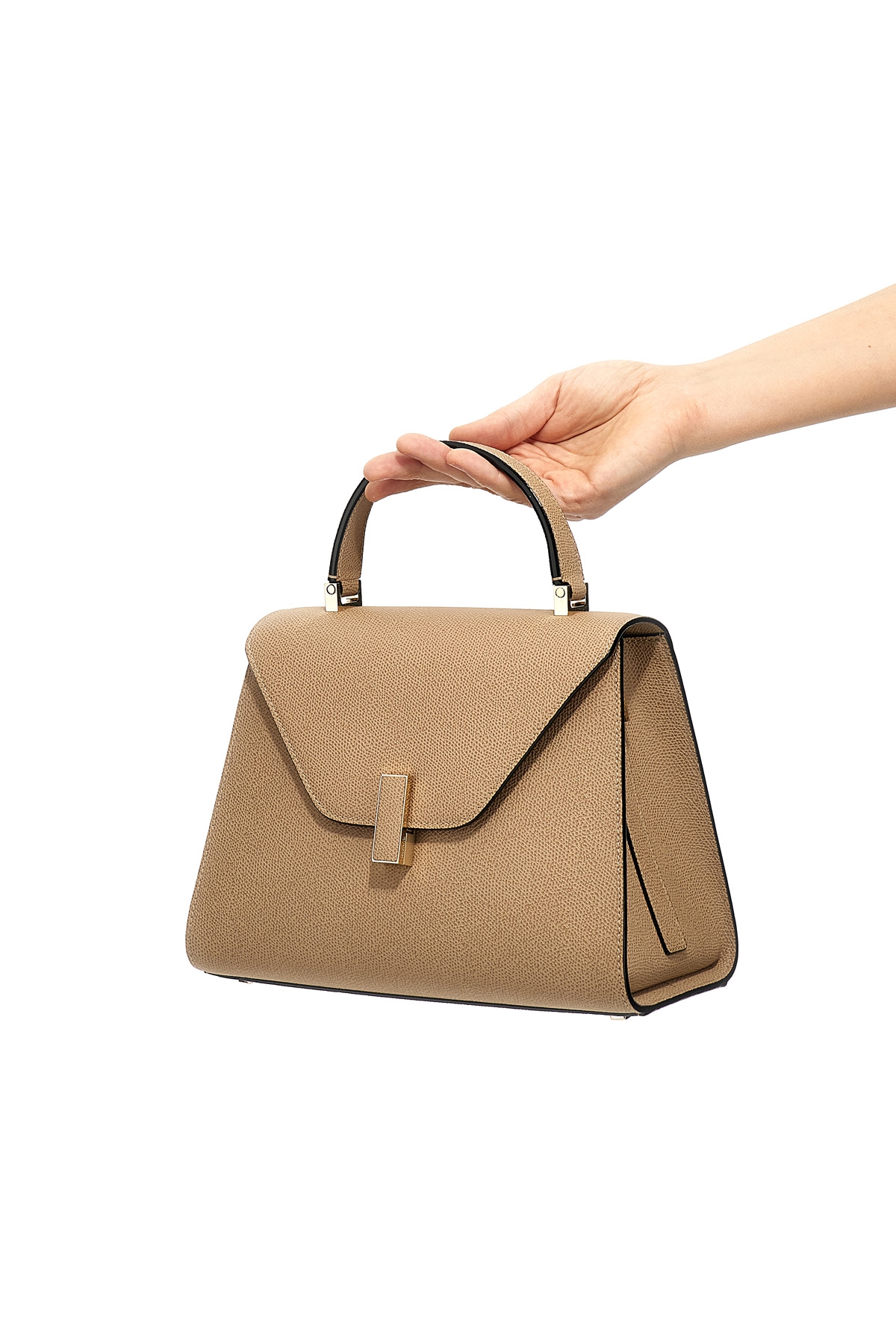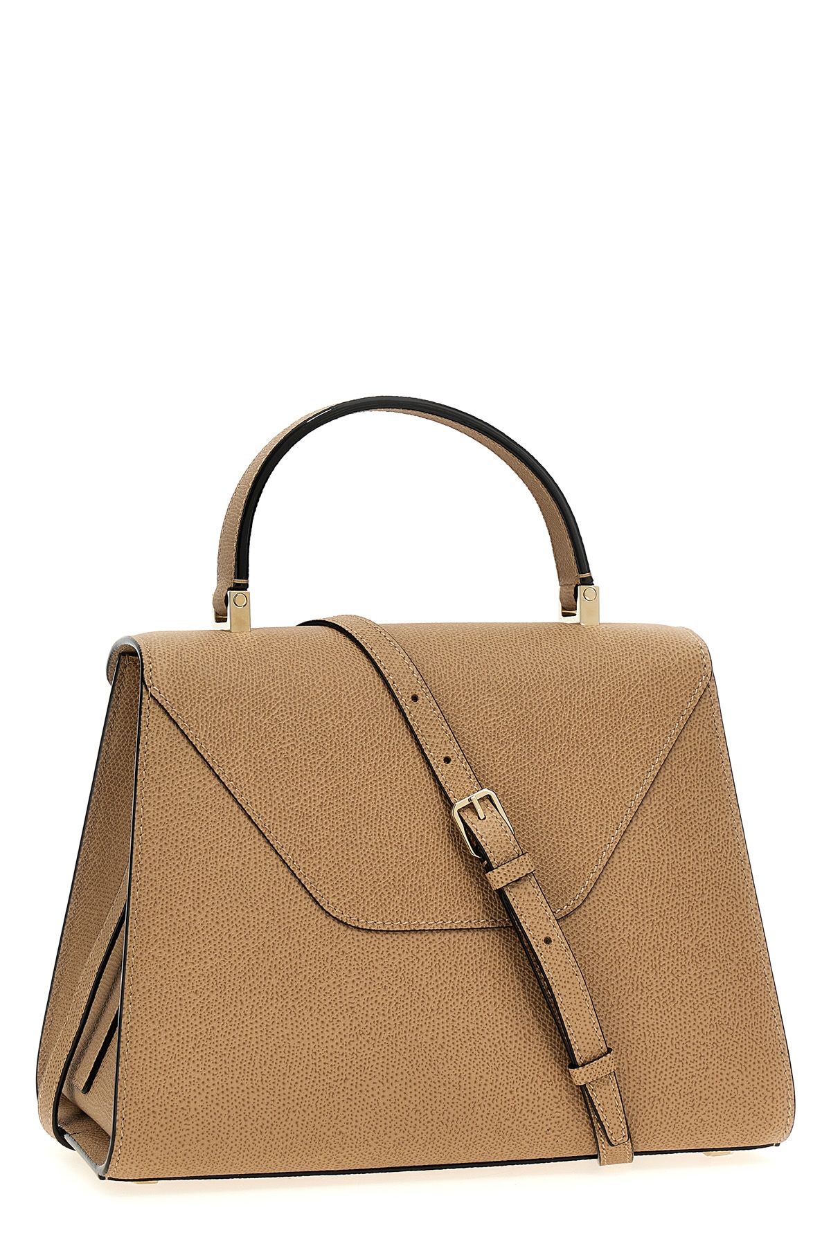 'Iside' medium handbag in Millepunte calf leather, Costa Valextra piping, fixed handle, flap turn-up closure, metal details, adjustable and removable shoulder strap.
