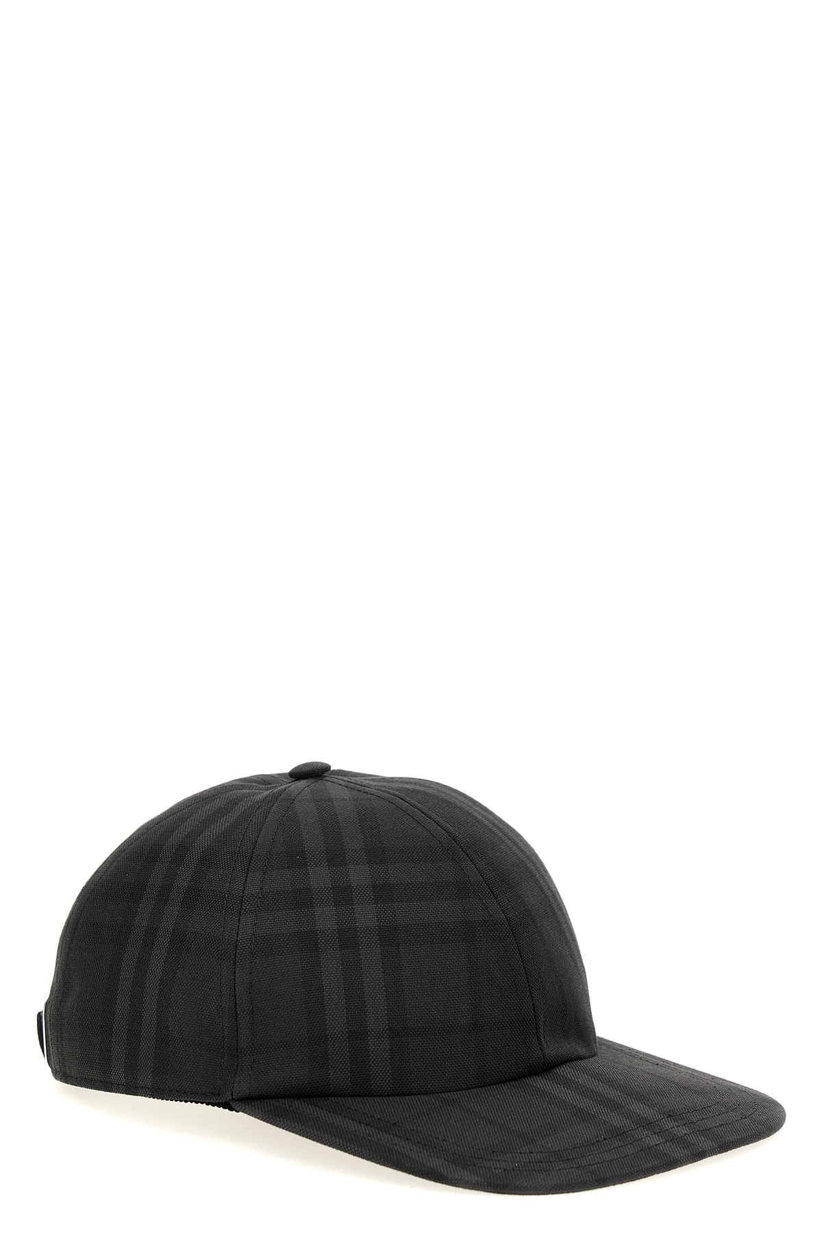 Check print canvas cap, back logo embroidery, adjustable strap.