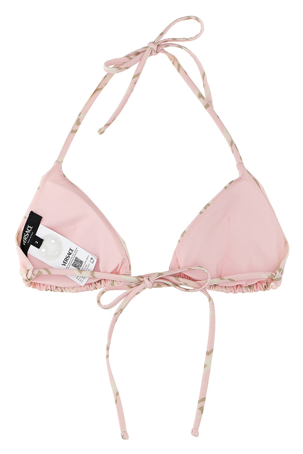 All-over 'Treasure' print bikini top, slightly padded, with adjustable lacing closure.