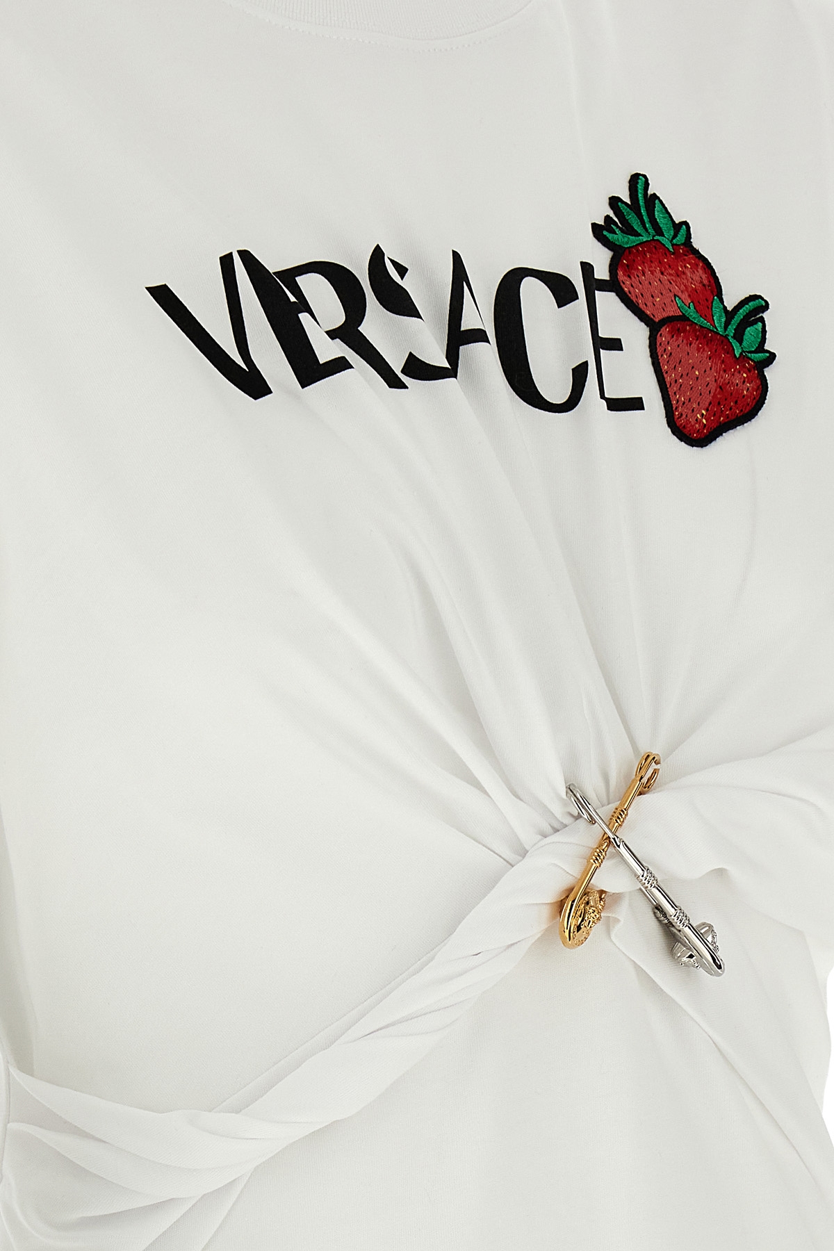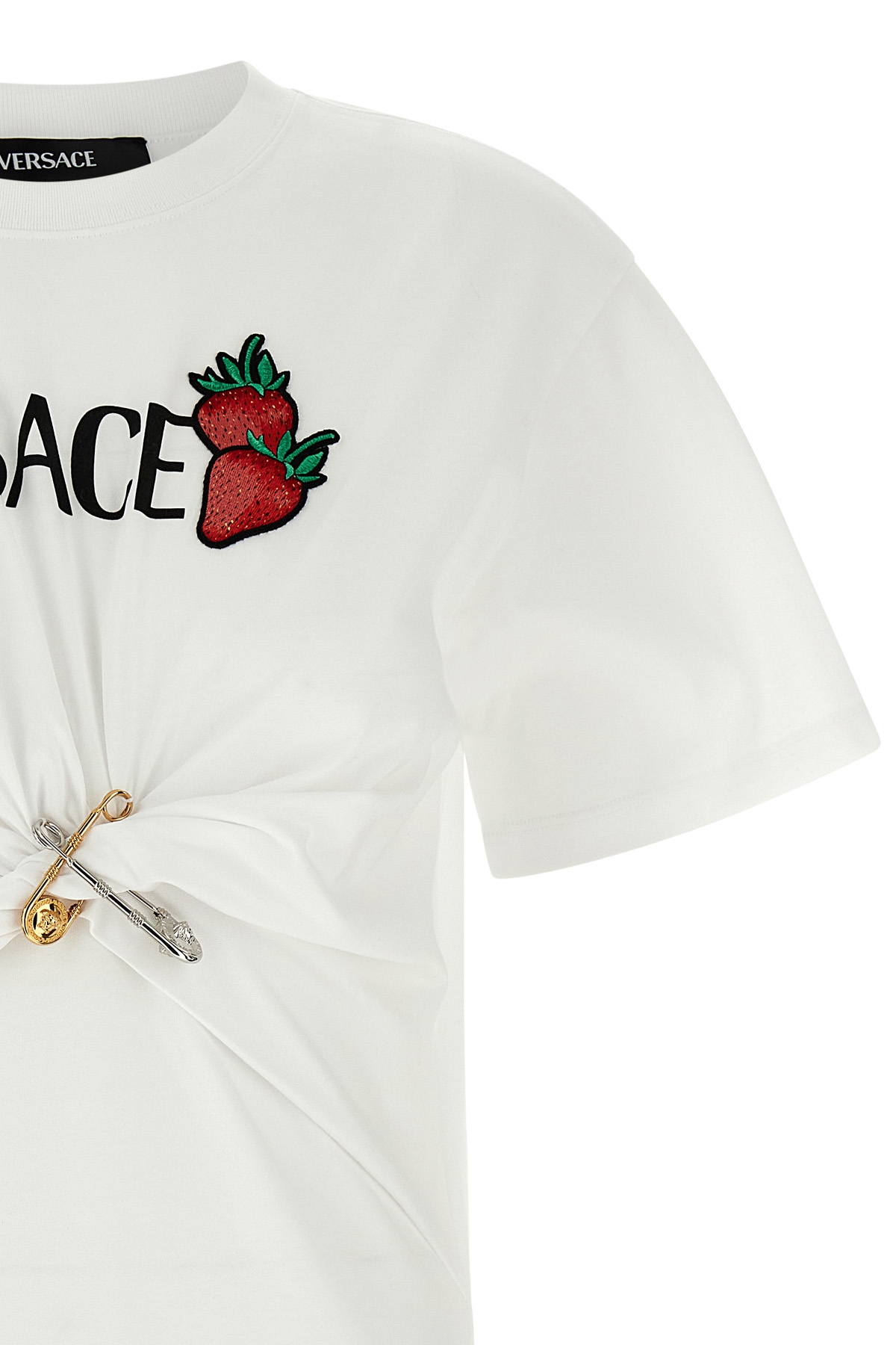 Cotton T-shirt with front 'Strawberry' print, crew neck, front 'Safety pin' curled and short sleeves.